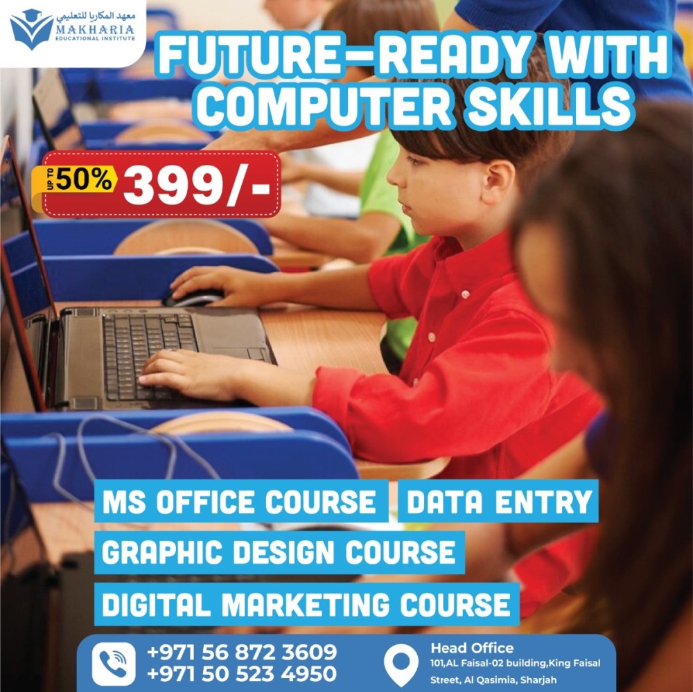 Empower your child or yourself with essential computer skills at Makaria Educational Institute – all for just 399 AED (Up to 50% OFF)!