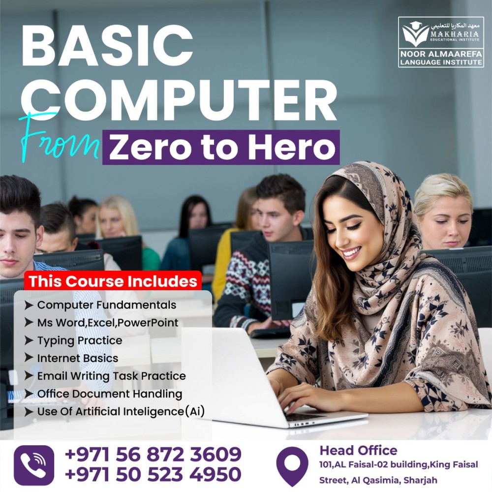 #BasicComputerCourse, #SharjahTraining, #MSOffice, #AIinUAE, #LearnAndGrow, #DigitalSkills, #ComputerTraining, #SharjahInstitute, #MakhariaInstitute,
