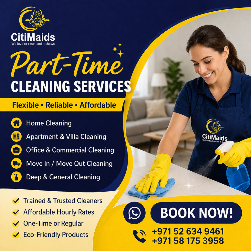 Looking for reliable part time cleaning services in Abu Dhabi? Citi Maids offers professional and flexible cleaning solutions designed to fit your schedule and budget. Whether you need help for a few hours a day or a couple of times a week, our trained maids are ready to keep your home clean and organized.