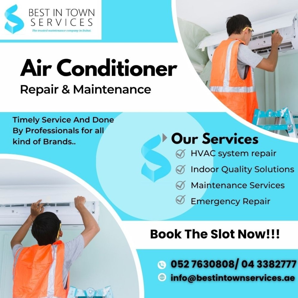 In this scorching Dubai heat, a faulty AC is the last thing you need! At Best in Town Services, we provide fast, professional, and affordable air conditioner repairs for all brands and models – so you can enjoy cool, clean air all year round.