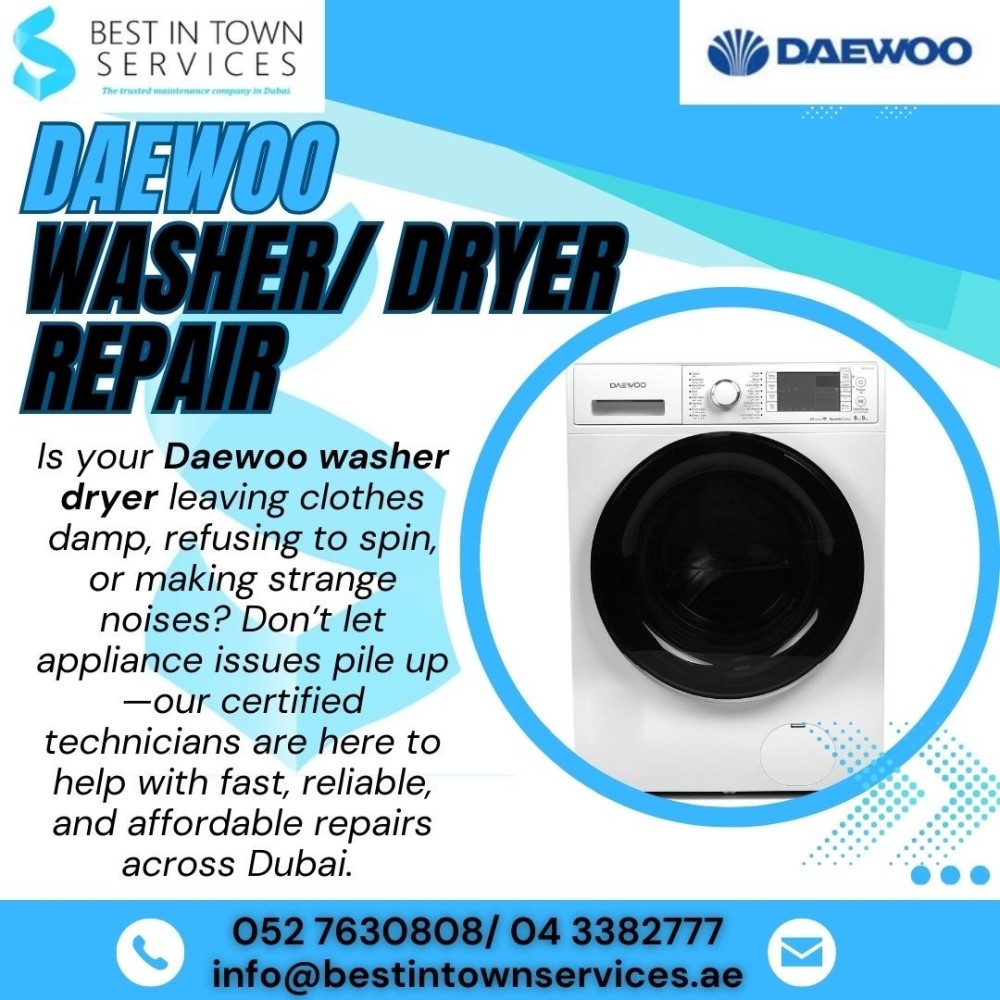 Is your Daewoo washer dryer not drying clothes, making noise, or stopping mid-cycle? Donβt let laundry day stress you out β at Best in Town Services, we deliver fast, affordable, and professional repairs to restore your machineβs performance.