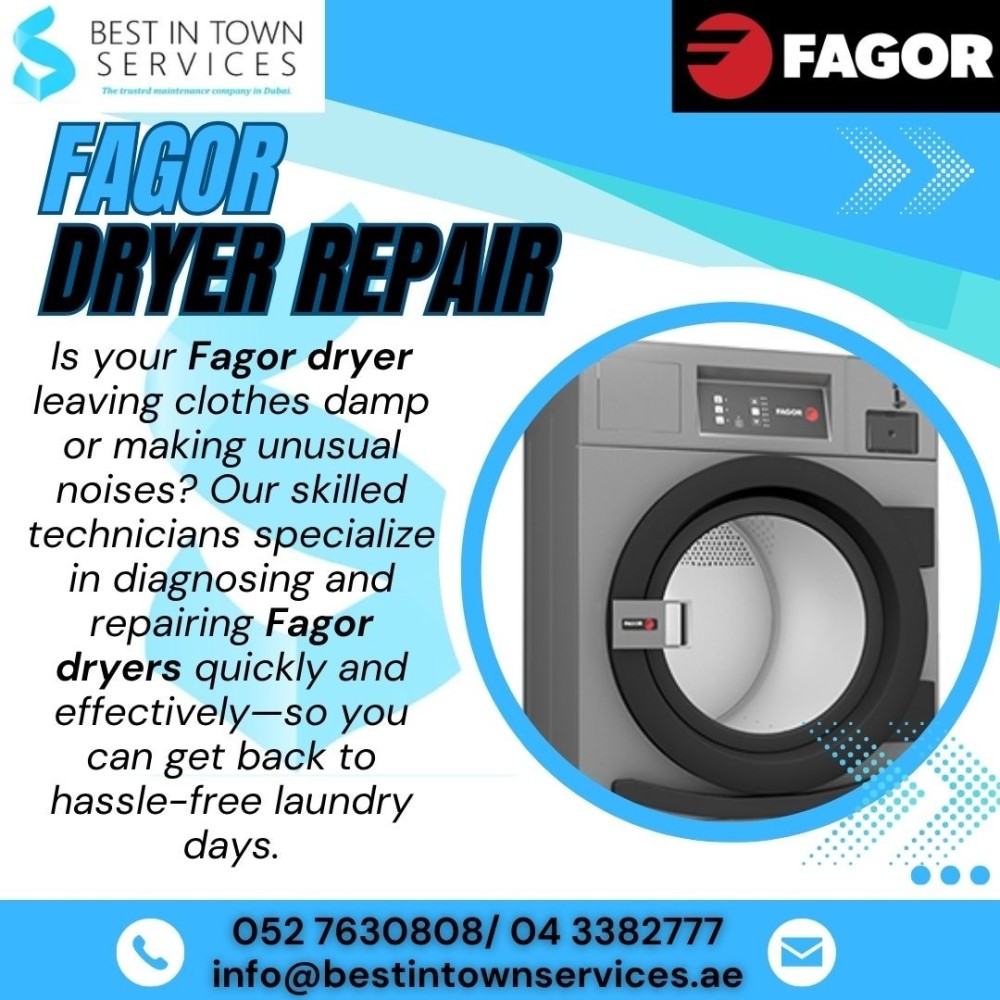 Is your Fagor dryer not heating, taking too long to dry, or stopping mid-cycle? Don’t worry — Best in Town Services LLC is here to restore its performance quickly and professionally! ⚙️
