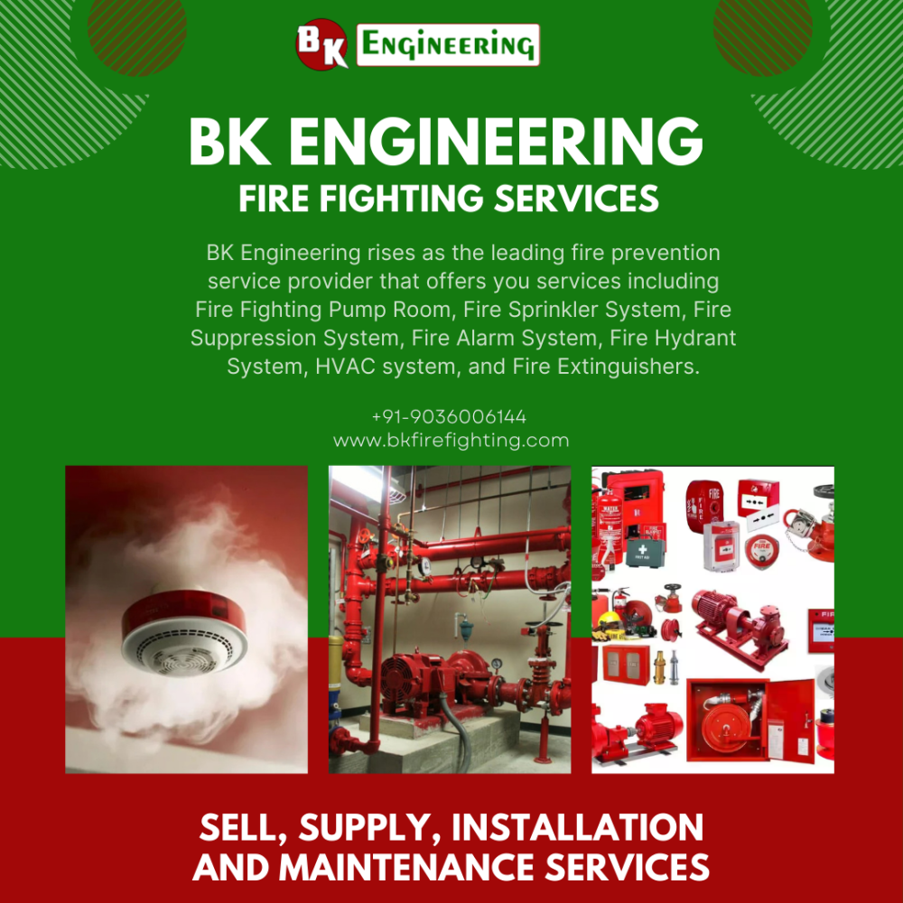 Looking for top-notch Fire Fighting Services in Haryana? BK Engineering provides advanced fire safety solutions, including fire extinguishers, alarms, and suppression systems. Our expert team ensures complete fire protection with cutting-edge technology and rapid response. We specialize in fire audits, sprinkler installations, and emergency evacuation plans. Trust us for unmatched fire prevention and risk management. Contact BK Engineering today for reliable fire security services tailored to your needs.