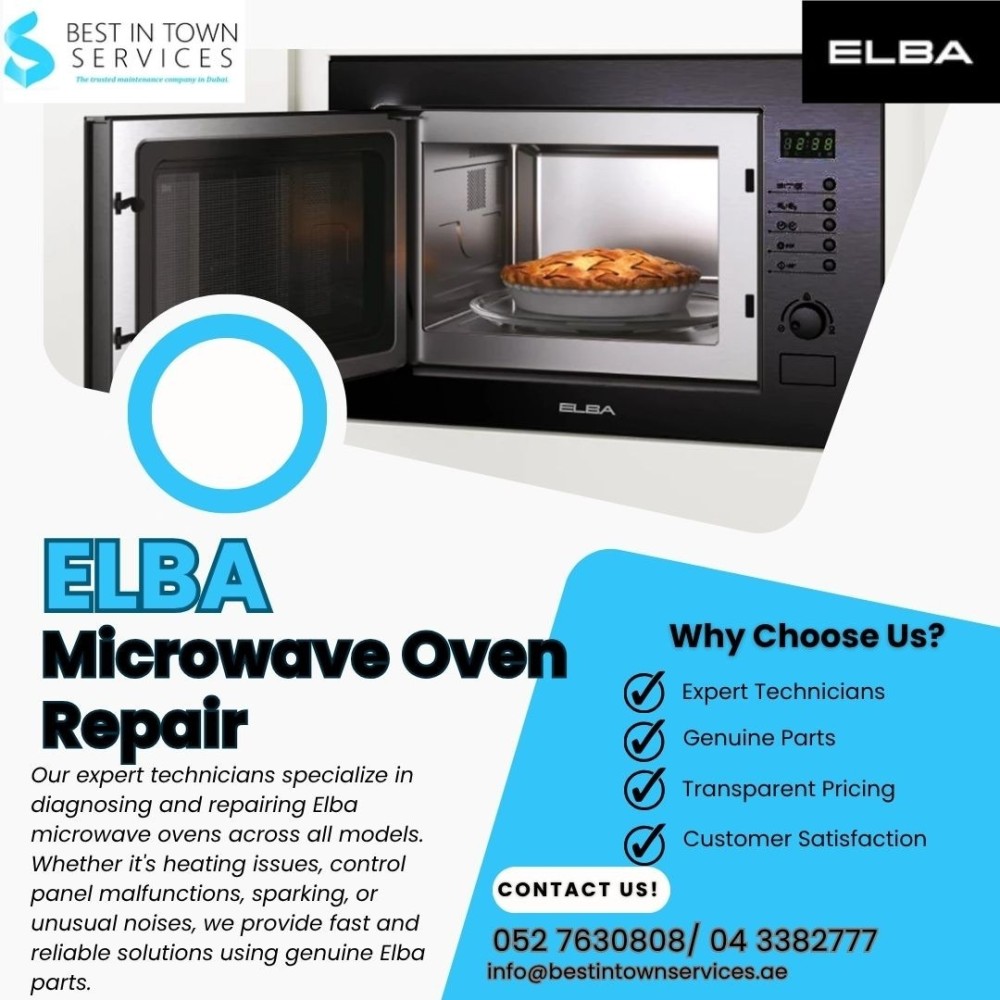 Elba Microwave Oven Repair Service Our skilled technicians specialize in diagnosing and repairing Elba microwave ovens across all models. Whether you're facing heating issues, control panel malfunctions, sparking, or unusual noises, we deliver fast and reliable solutions using genuine Elba parts. From magnetron replacements to door seal fixes, we restore your appliance’s performance with precision and care. With doorstep service, transparent pricing, and a commitment to customer satisfaction, we ensure your kitchen stays efficient and stress-free.