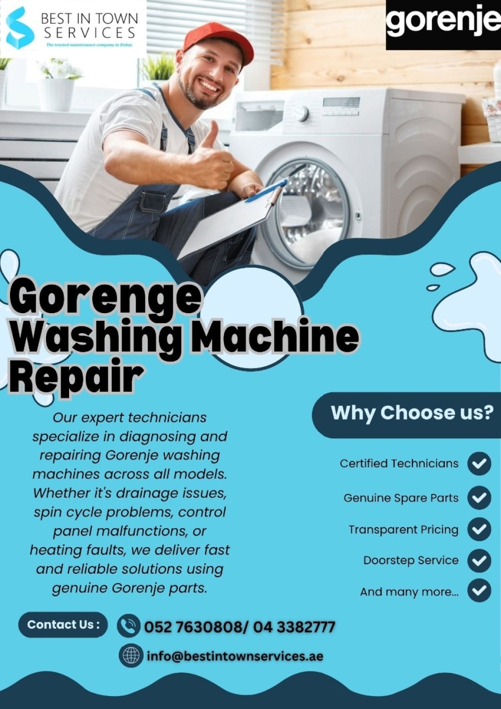 Gorenje Washing Machine Repair Service Our skilled technicians specialize in diagnosing and repairing Gorenje washing machines across all models. Whether you're facing drainage issues, spin cycle malfunctions, control panel errors, or heating problems, we deliver fast and reliable solutions using genuine Gorenje parts. From motor brush replacements to pump and heating element repairs, we restore your appliance’s performance with precision and care. With doorstep service, transparent pricing, and a commitment to customer satisfaction, we ensure your laundry routine stays smooth and stress-free.