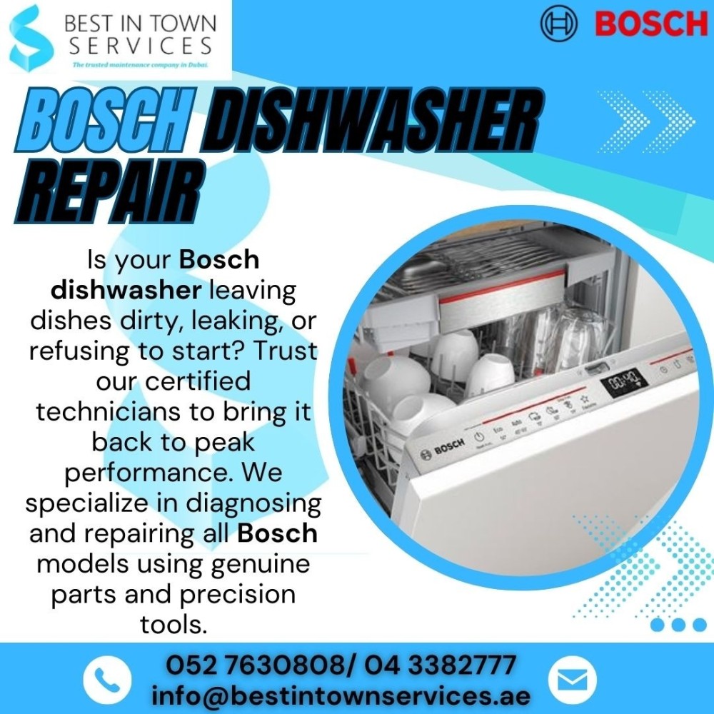 Is your Bosch dishwasher not cleaning properly, leaking, or making unusual noises? Don’t let dirty dishes pile up — Best in Town Services is here to bring it back to life! 🛠️ Our expert technicians specialize in fast, reliable, and affordable Bosch dishwasher repairs, ensuring spotless results and smooth performance every time.