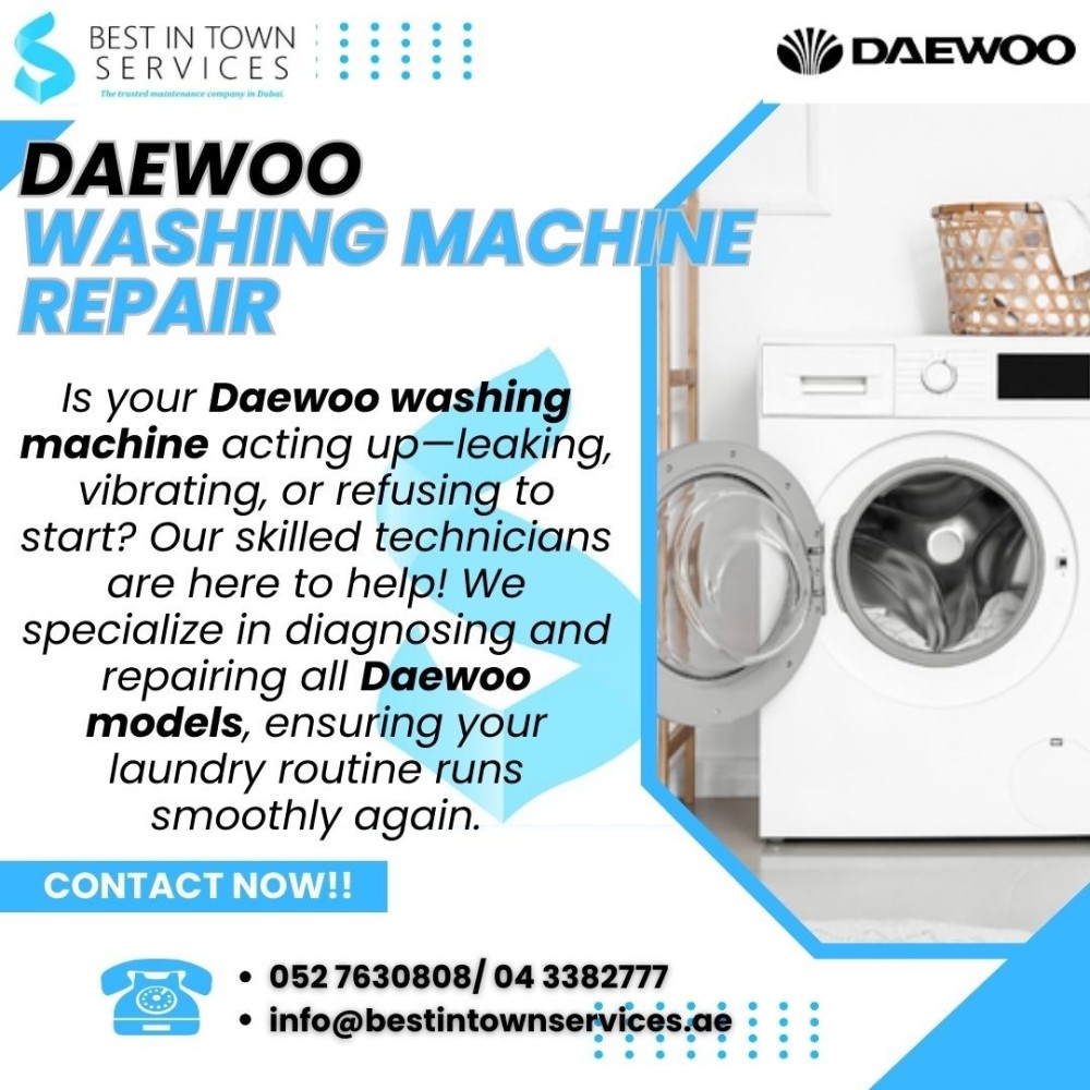We specialize in all Daewoo washing machine models, providing reliable repairs, genuine spare parts, and quick service across Dubai.