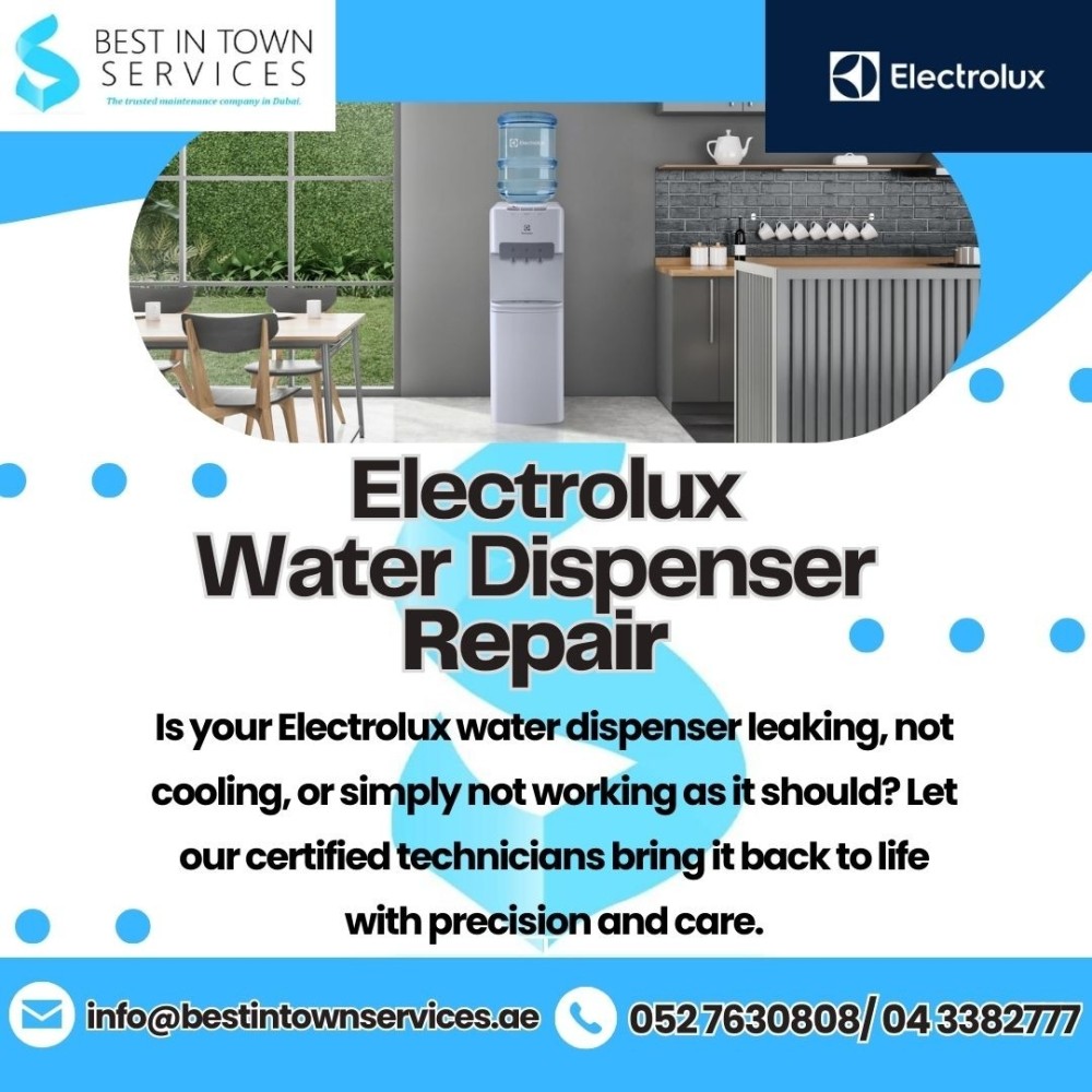 Is your Electrolux water dispenser not cooling, leaking, or making strange noises? Donβt let water issues disrupt your day β trust Best in Town Services for fast and reliable repairs.