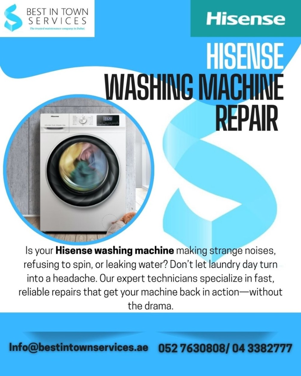 Is your Hisense washing machine not draining, not spinning, making loud noises, or showing error codes? Donβt worry β Best in Town Services is here to bring it back to life!