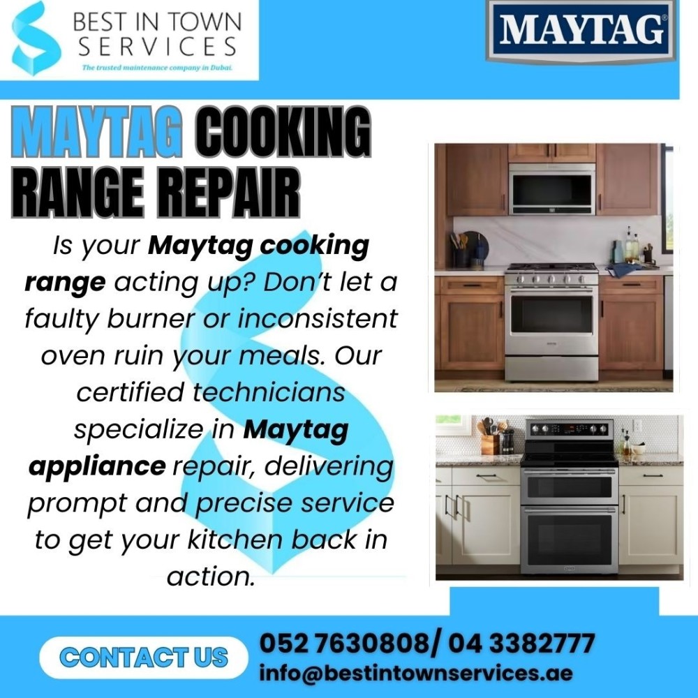 Is your Maytag cooking range not heating, uneven cooking, or showing error codes? Donβt let meal times get ruined β Best in Town Services is here to bring your kitchen back to life! π³