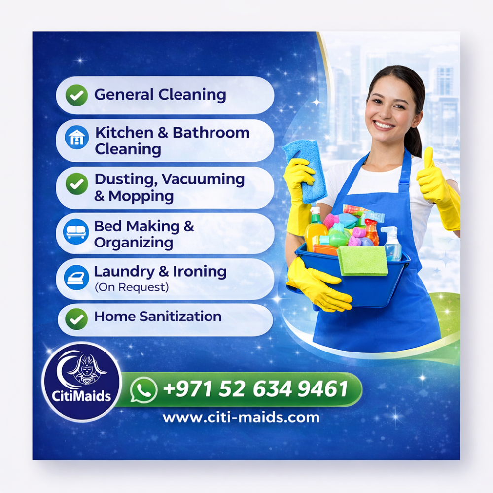 Looking for professional and reliable house cleaning services in Abu Dhabi? Citi Maids provides top-quality cleaning solutions to keep your home spotless, fresh, and hygienic. Our trained and experienced cleaners deliver excellent results tailored to your needs.