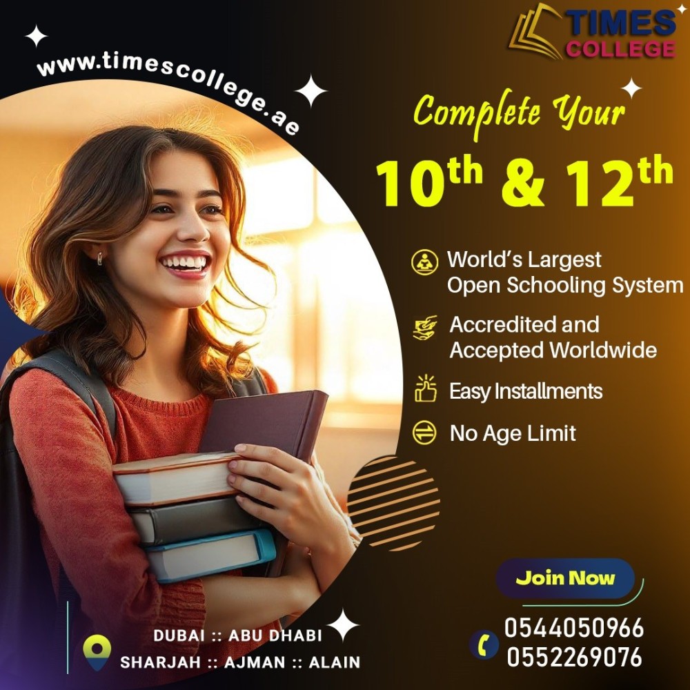 NIOS in Sharjah is one of the most affordable options without sacrificing academic quality. Times College is the top institute where students can get superior quality education without burning their pockets. Attend the classes online/offline mode and rest assured as your future is in safe hands.