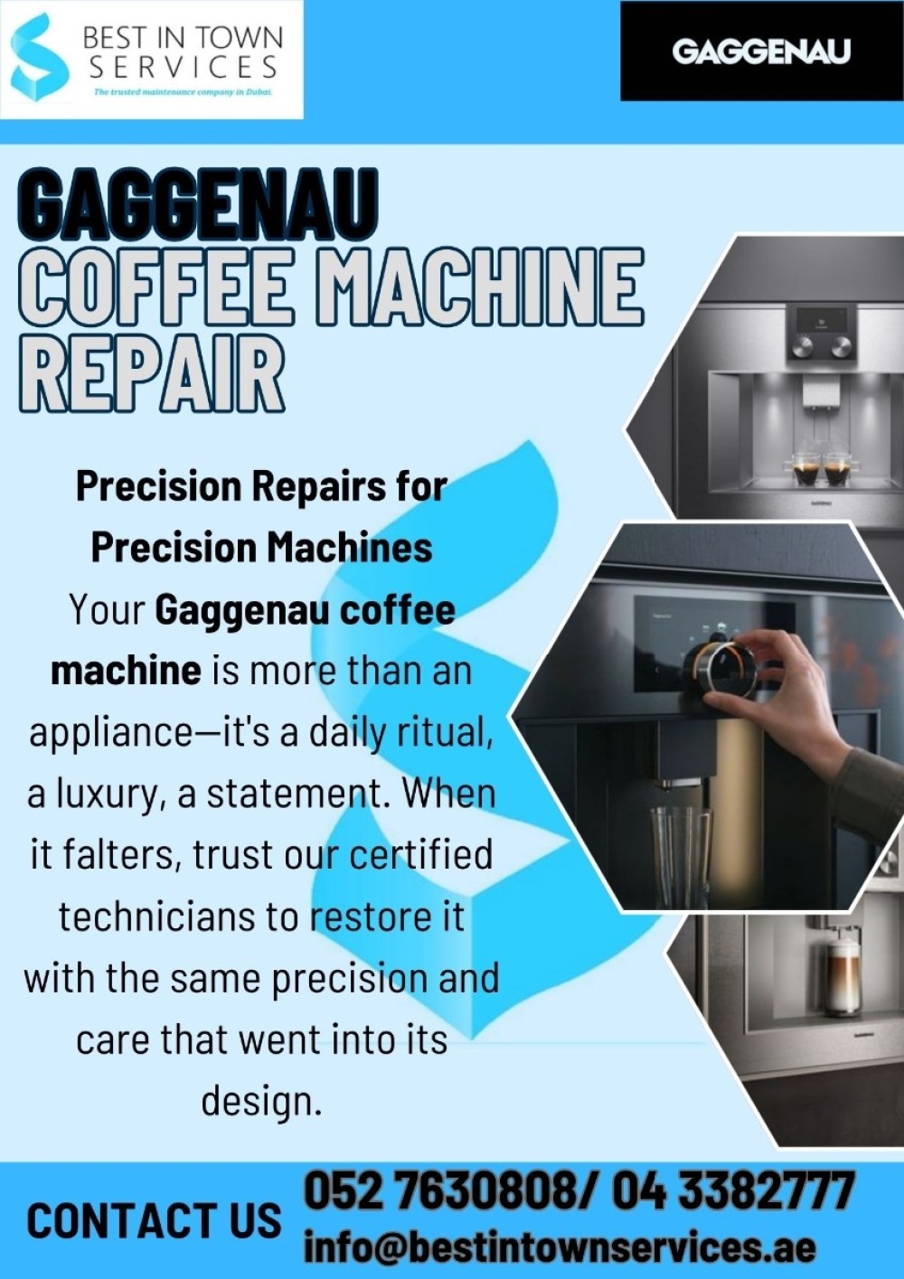 Is your Gaggenau coffee machine not brewing, dripping slowly, leaking water, or showing error codes? Don’t let your mornings lose their flavor – Best in Town Services is here to restore your perfect cup of coffee! 🌟