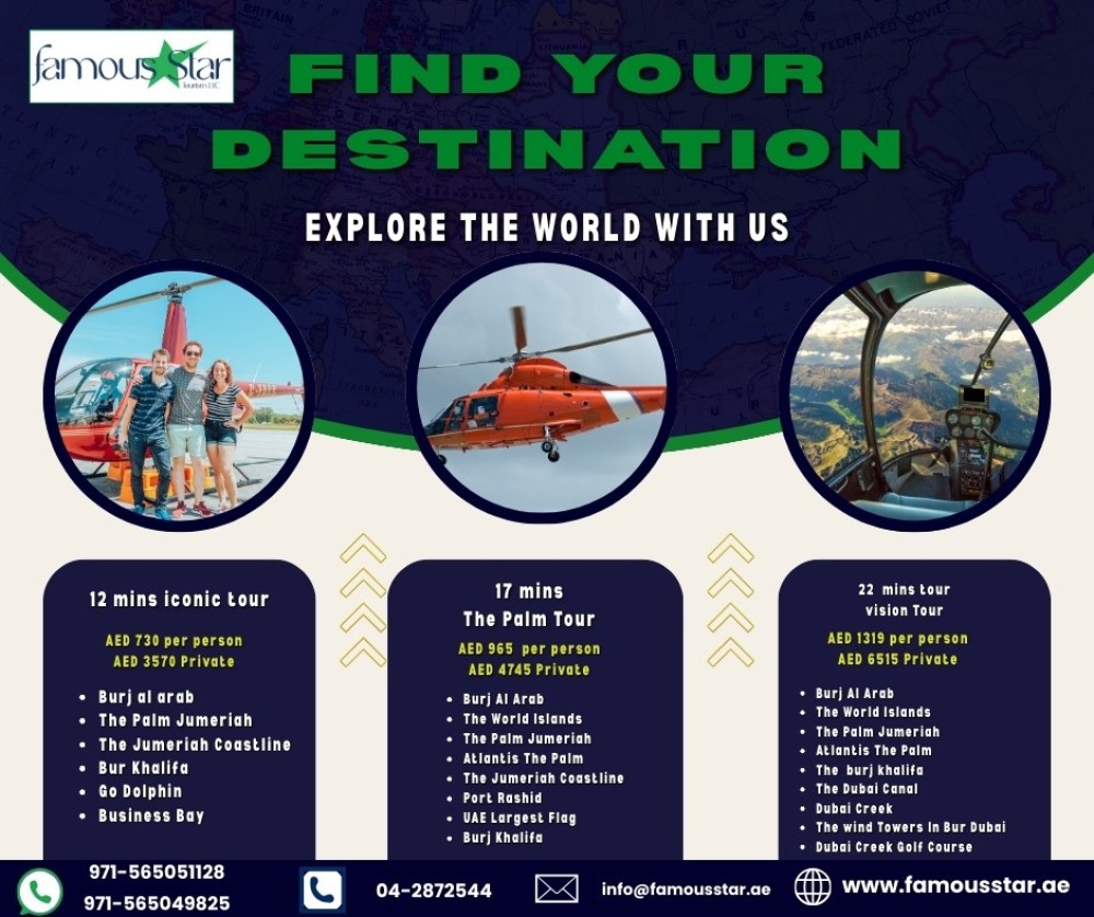 Famous Star Tourism LLC – Dubai is a leading travel and tourism company offering comprehensive solutions for all your travel needs. We specialize in visit visas for all nationalities, visa change inside UAE (A2A/B2B), hotel bookings, flight reservations, airport transfers, car rentals, and inbound/outbound tour packages.