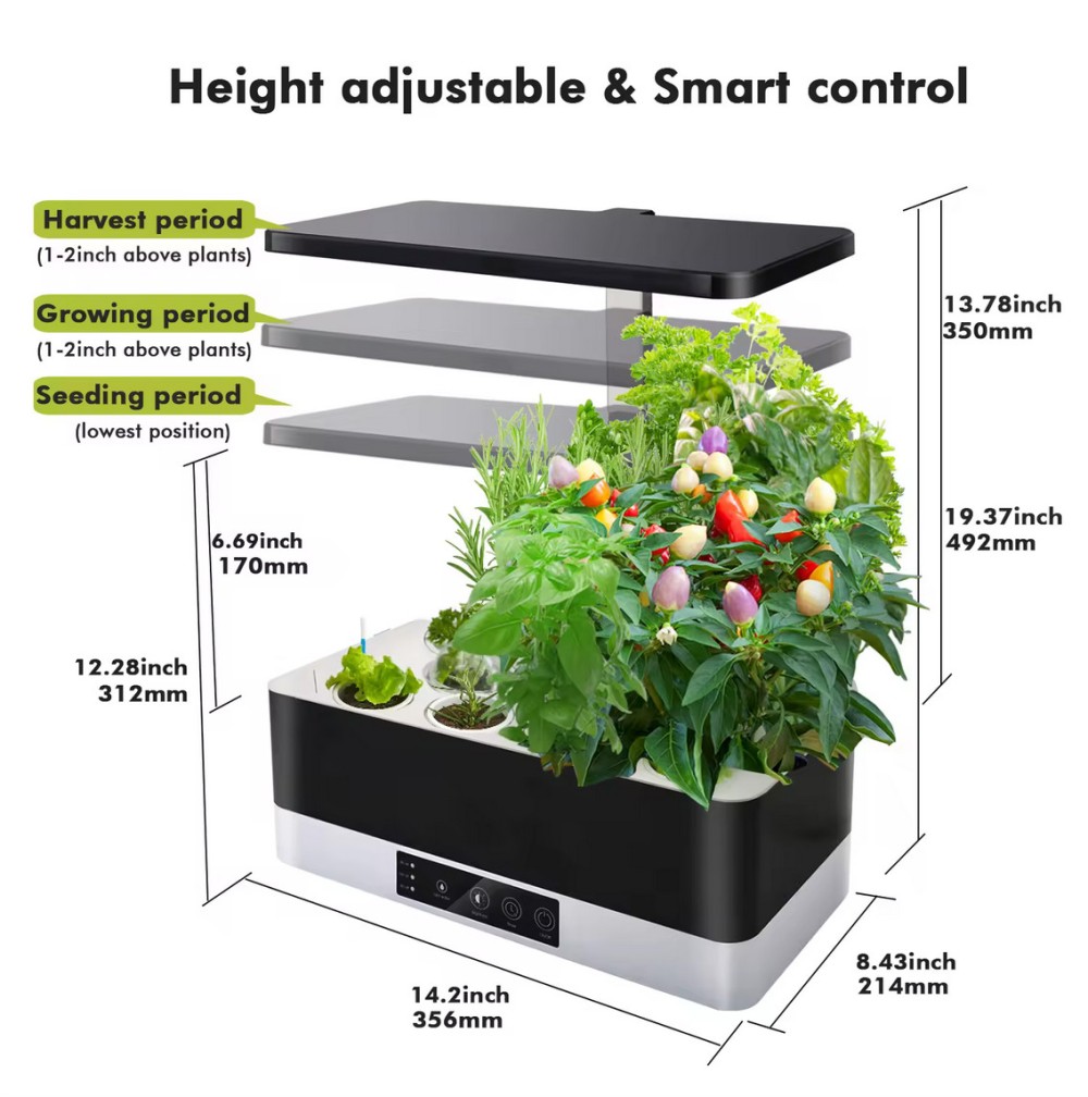 【Height-Adjustable Garden Kit】: The height of the lighting part of the hydroponics growing system can be adjusted for plants at different growth stages. Grow 9 plants at a time, works up to 59.5cm. Growing in the nutrient water faster than soil. You have total control over the weather all year round.