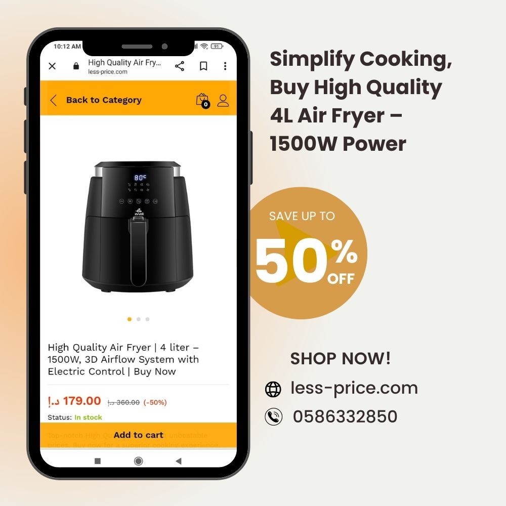 The sleek design, coupled with intuitive controls, elevates your cooking experience. Simplify your daily meals, embrace healthier choices, and experience the joy of hassle-free cooking. Elevate your kitchen with our High-Quality 4L Air Fryer – where innovation and culinary excellence converge.