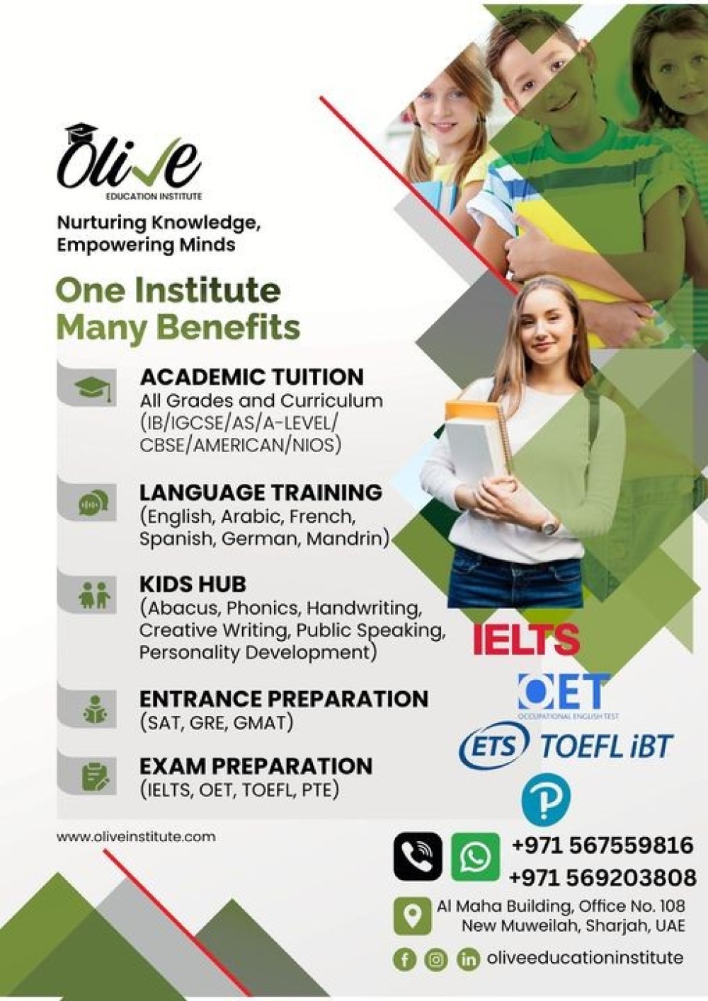 Embark on a journey to academic and professional success with Olive Education Institute, your premier destination for exam preparation courses in Sharjah. Specializing in a range of internationally recognized tests, we offer top-notch coaching to help you achieve your desired scores.