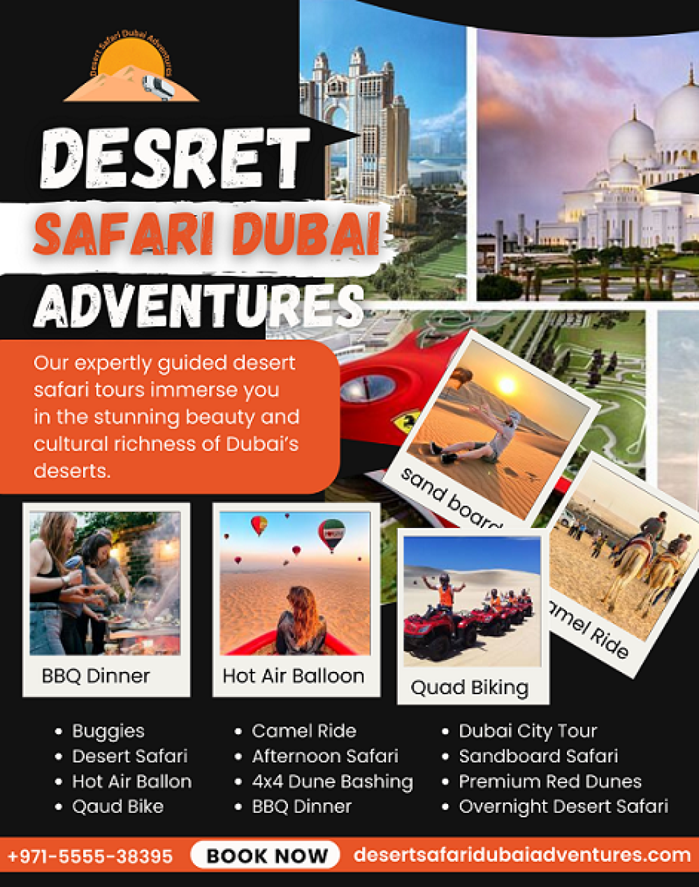 Desert Safari Dubai Adventures is a once-in a lifetime experience that allows you to witness the beauty of the Arabian Desert, enjoy thrilling adventures, and immerse yourself in traditional culture. Whether you're looking for excitement, relaxation, or a bit of both, there's a safari package perfect for you. So, prepare for an unforgettable adventure that will leave you with memories to last a lifetime.