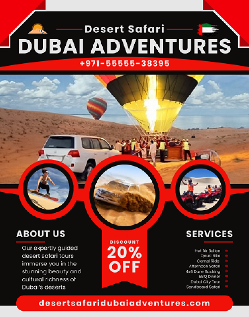 Enjoy the thrilling dune bashing, VIP camping with BBQ, cozy sitting areas, a shisha bar & breathtaking sunsets. Experience an unforgettable Arabian night. Discover the ultimate Desert Safari Dubai Adventures, where thrilling dune bashing, peaceful camel rides, and mesmerizing stargazing await. Immerse yourself in authentic Bedouin culture, enjoy delicious BBQ dinners, and explore the stunning Arabian desert landscape. A must-have experience for anyone visiting Dubai!