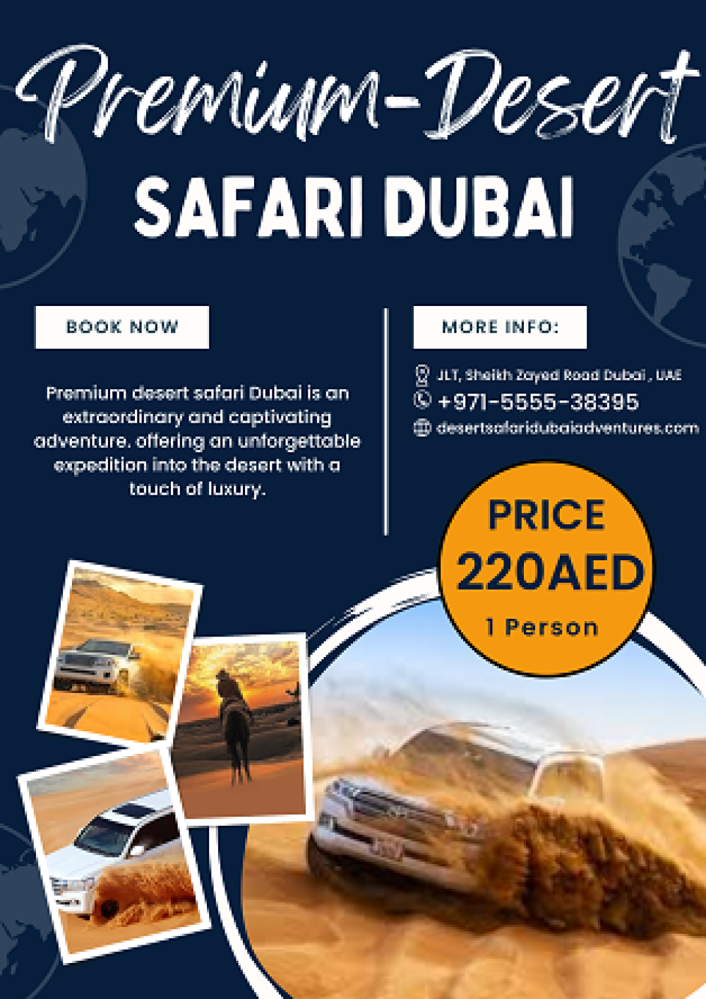 A desert safari in Dubai is more than just an activity; it's a journey that blends thrill, culture, and natural beauty. Whether you're navigating the dunes, soaking in the sunset, or indulging in traditional cuisine, each moment captures the essence of the Arabian desert. A trip to Dubai isn’t complete without experiencing this unique and unforgettable adventure. Premier site for desert safari in dubai, evening desert safari, overnight desert safari, dubai city tour and dinner cruises.