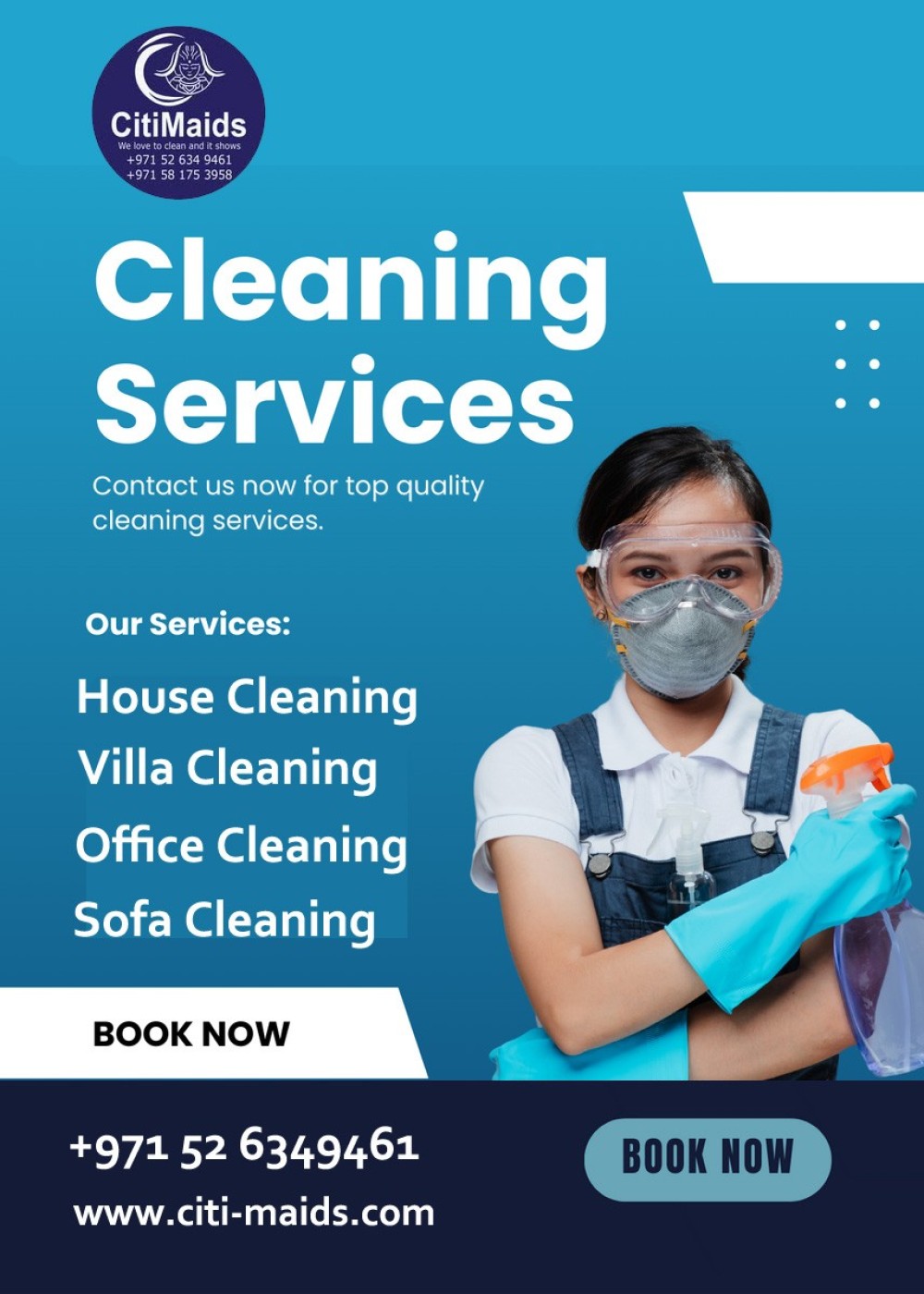 We provides a range of dedicated commercial and cleaning solutions. Citi maids service is certified by Abu Dhabi and Dubai Municipality. The professional cleaners at Citi maids service are well trained and maintain the best quality services. The secret of Citi maids service success is customer satisfaction.