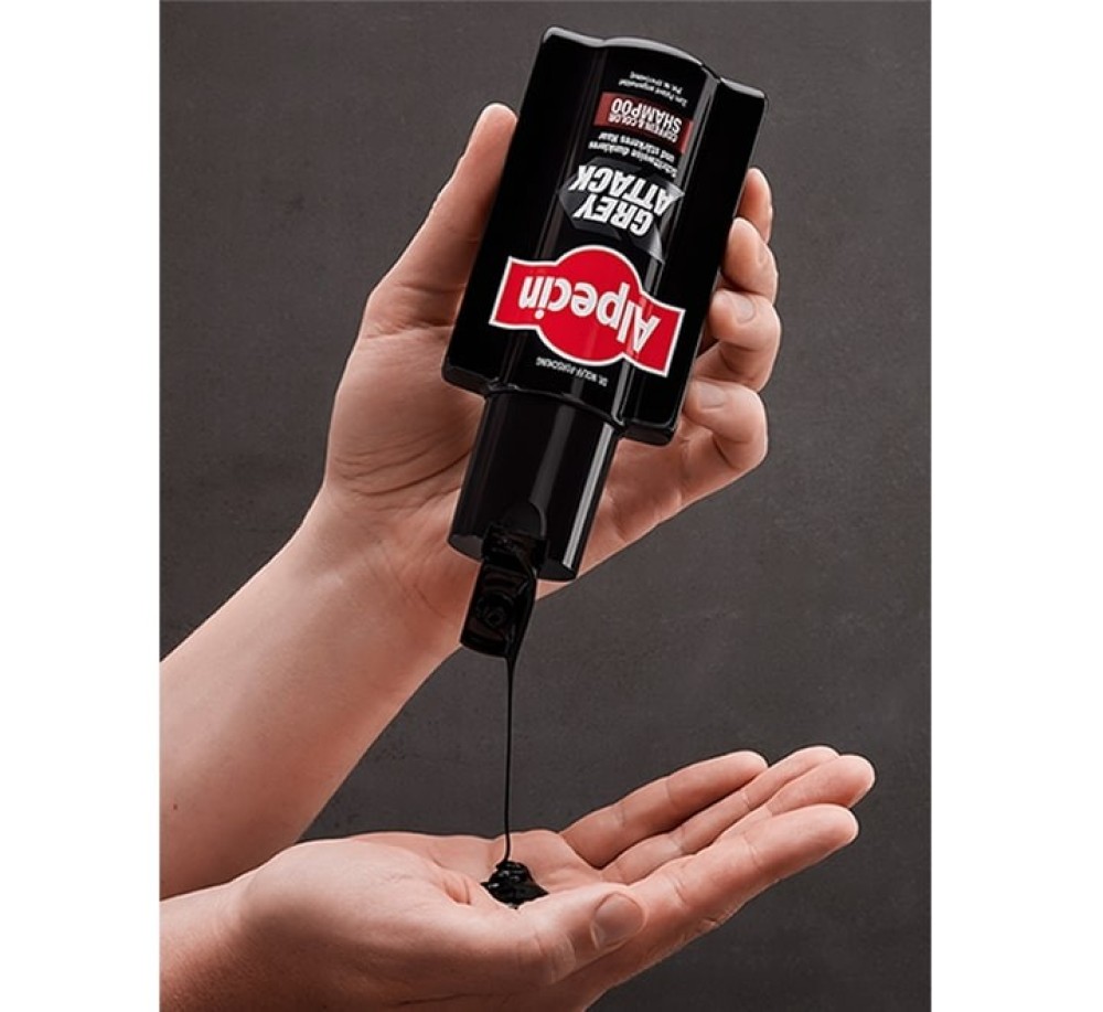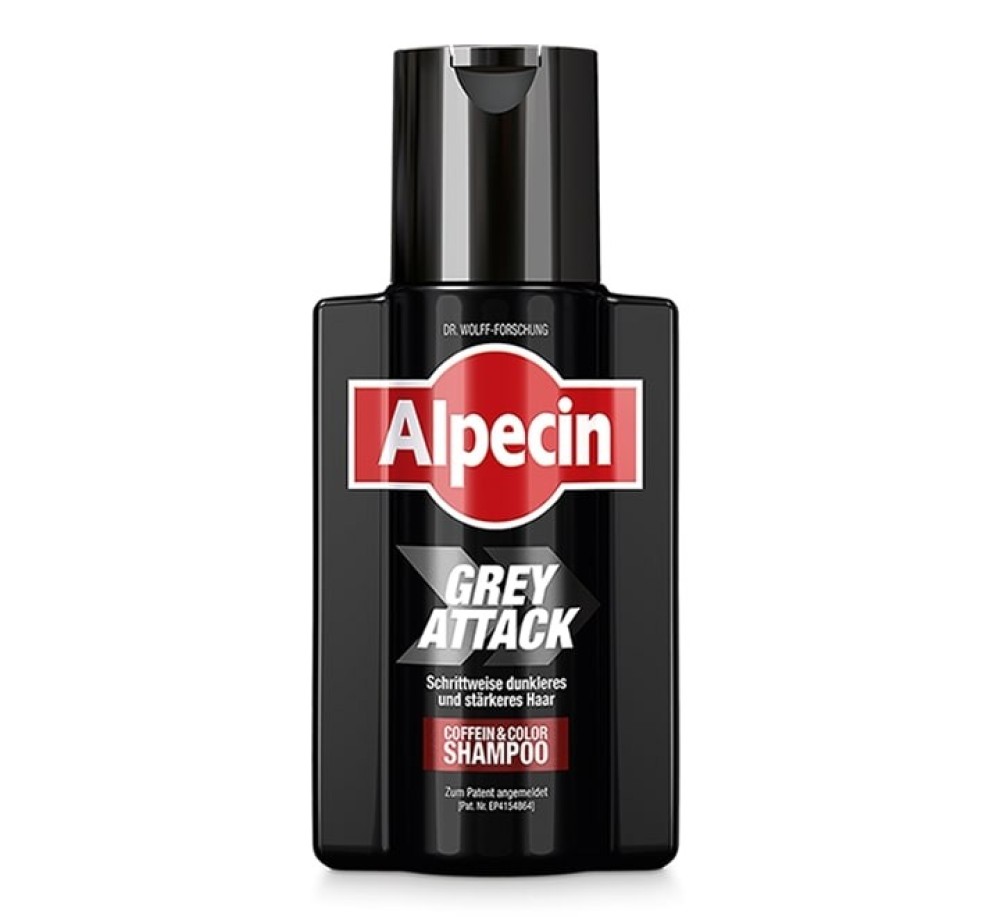 For all men who want to do something about their (first) grey hair, Alpecin Grey Attack Caffeine & Color Shampoo 200ml offers our best for men’s hair that is turning grey: the possibility to make hair darker again step by step in just two to five minutes in the shower – with a particularly natural color effect!