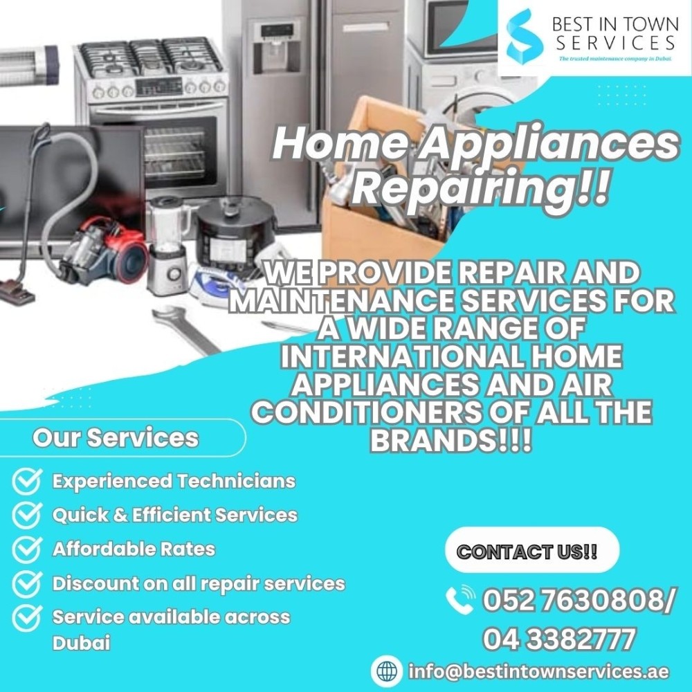 Best in Town Services LLC is a trusted and leading home appliance repair and maintenance company based in Dubai, UAE. With years of experience and a team of highly skilled technicians, we specialize in providing fast, reliable, and affordable repair solutions for all types and brands of home appliances.