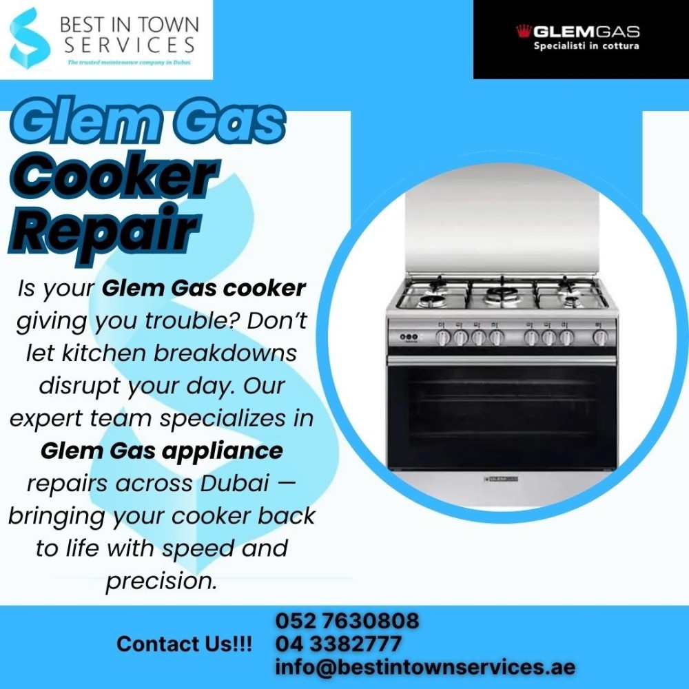 Is your Glem Gas cooker not igniting, heating unevenly, or shutting down while cooking? Don’t let appliance troubles interrupt your meals β€” Best in Town Services provides fast, reliable, and professional repair solutions to bring your cooker back to perfect working condition. Our expert technicians use genuine parts for safe, long-lasting, and stress-free service.