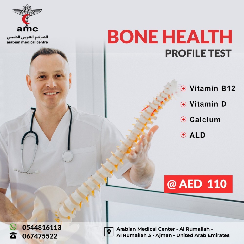 Conditions like osteoporosis can be managed better with early detection. Take charge of your bone health—book your Bone Health Profile Test at Arabian Medical Centre today! For just 110 AED, gain peace of mind and ensure a stronger, healthier you. Call now to schedule your appointment!