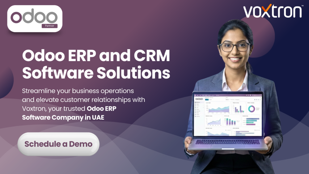Looking for reliable Odoo ERP Software Solutions in the UAE? Voxtron Middle East delivers customized Odoo ERP, CRM, Accounting, Inventory, HR, and Business Management solutions to streamline operations and accelerate growth. Transform your business with scalable, cloud-based ERP systems designed for efficiency and success.