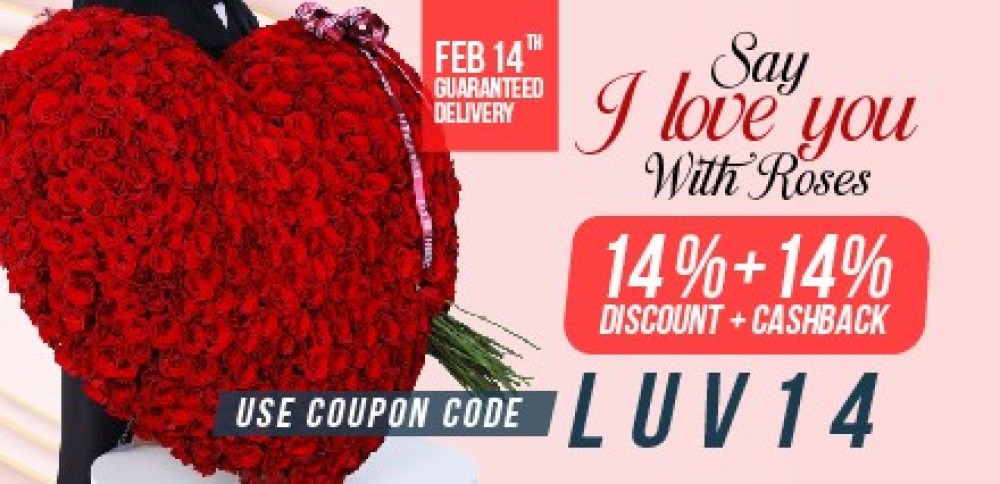 Get 14% Instant Discount + 14% Cashback on stunning Valentineโ€™s Day flower arrangements. ๐Ÿ’โค๏ธ