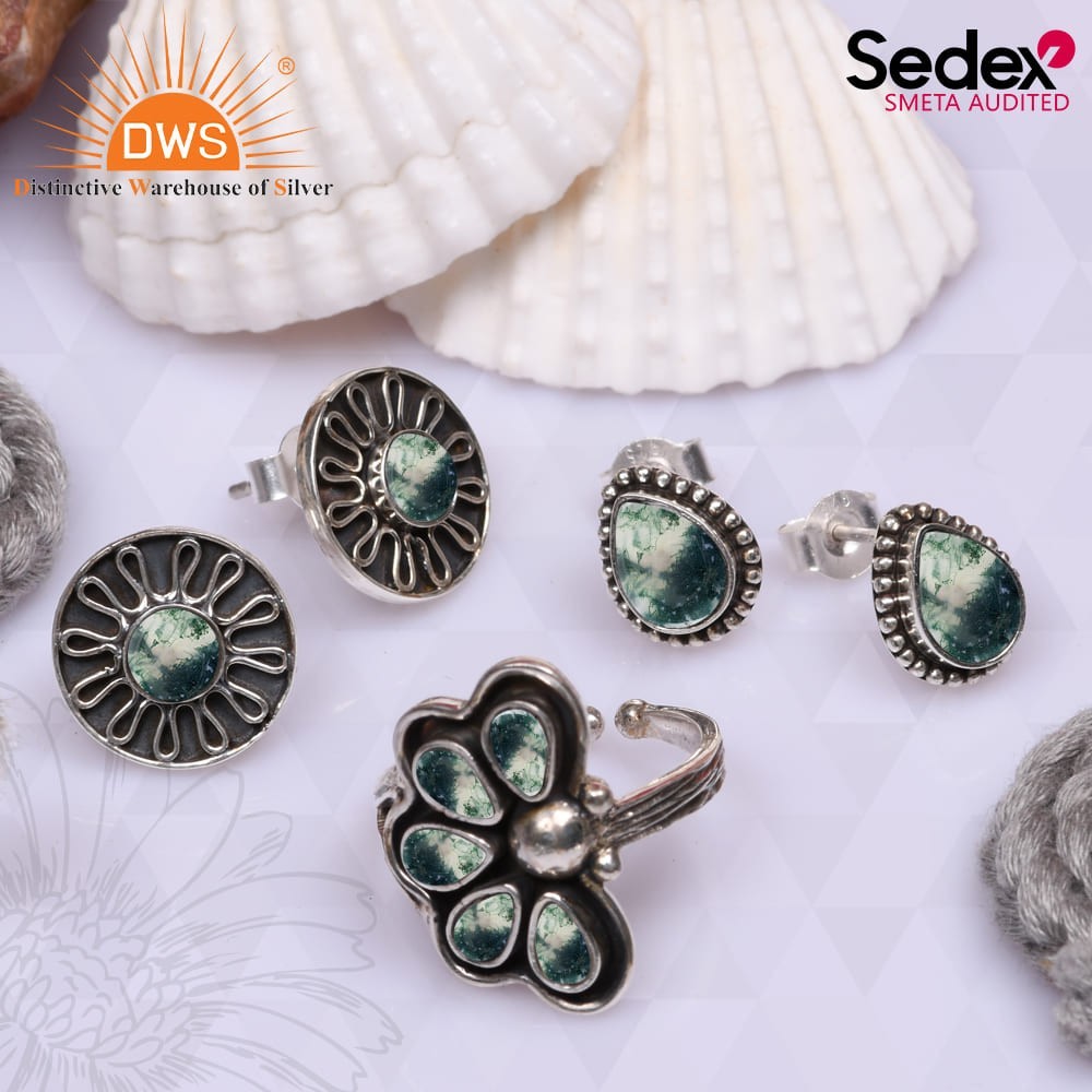 Looking for a stunning and elegant Moss Agate jewellery set for any occasion? Look no further than the Sedex SMETA audited DWS Jewellery Store in India! Our store offers a wide range of high-quality Moss Agate jewellery pieces that are perfect for adding a touch of sophistication to any outfit.Our Moss Agate jewellery set is crafted with precision and attention to detail, making it a timeless and versatile addition to your collection. Whether you're attending a formal event or simply looking to elevate your everyday look, this set is sure to turn heads.