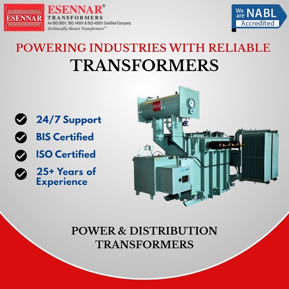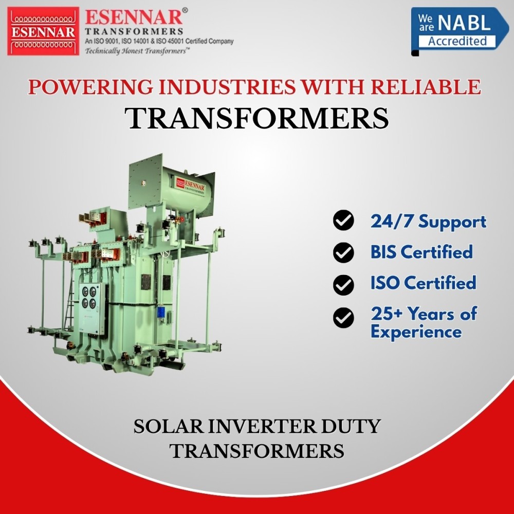 Esennar Transformers offers a wide range of high-quality electrical transformers including oil-filled, dry-type, solar inverter duty, and pad-mounted models. Known for reliability and advanced technology, they serve power distribution, industrial, renewable energy, and infrastructure sectors. ISO-certified and designed for durability, Esennar ensures efficient voltage regulation and safe electrical performance across diverse applications.