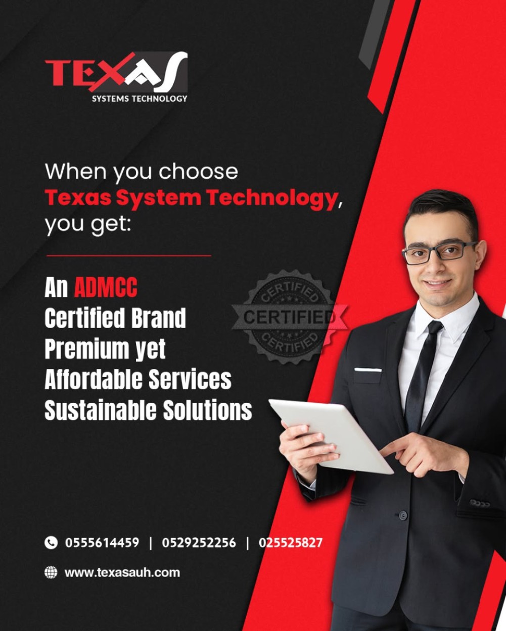 For more than 20 years, Texas Systems Technology has been a trusted provider of IT solutions in Abu Dhabi, Mussafah, and Sharjah. We specialize in delivering state-of-the-art services such as structured cabling, IT and network infrastructure, CCTV installation, and smart automation systems. Backed by a team of experienced professionals, we are dedicated to offering reliable, efficient solutions paired with exceptional customer service.