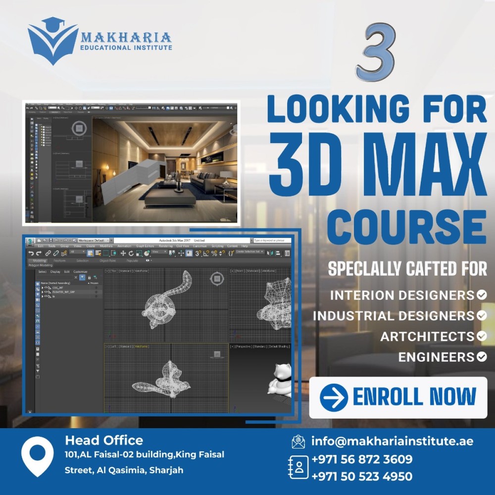 #3DMax, #DesignTraining, #ArchitecturalRendering, #3DModeling, #Animation, #VisualEffects, #GameDesign, #Rendering, #GraphicDesign, #MakahriaInstitute,