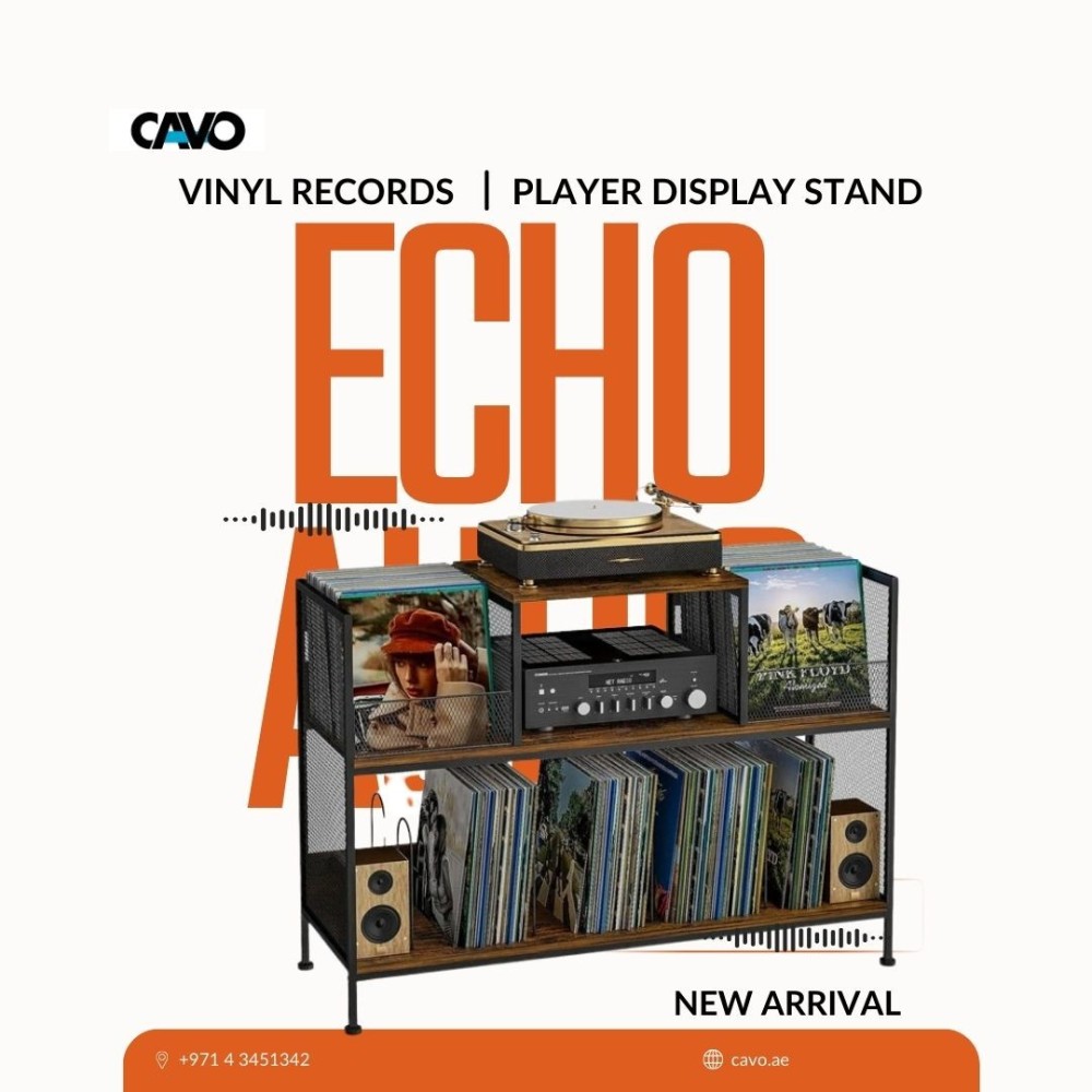 Introducing the Echo Vinyl Record Player Display Stand! This sleek and functional piece is designed to showcase your vinyl records and turntable in style.