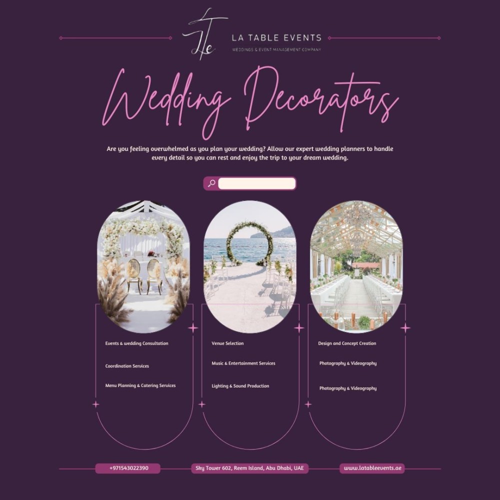 Do you have visions of an extraordinary wedding? You need look no farther than La table event, the best place in Dubai for wedding décor and design. Contact us today and let’s start crafting your dream wedding together.