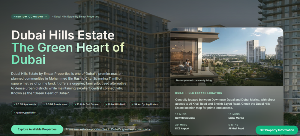 Discover the ultimate lifestyle at Dubai Hills Estate, the "Green Heart of Dubai." As a premier destination developed by Emaar Dubai Hills Estate, this community perfectly blends luxury living with nature. Spanning over 11 million square meters, the master plan Dubai Hills Estate features an 18-hole championship golf course, the massive Dubai Hills Mall, and 1.4 million square meters of lush parks and open spaces.