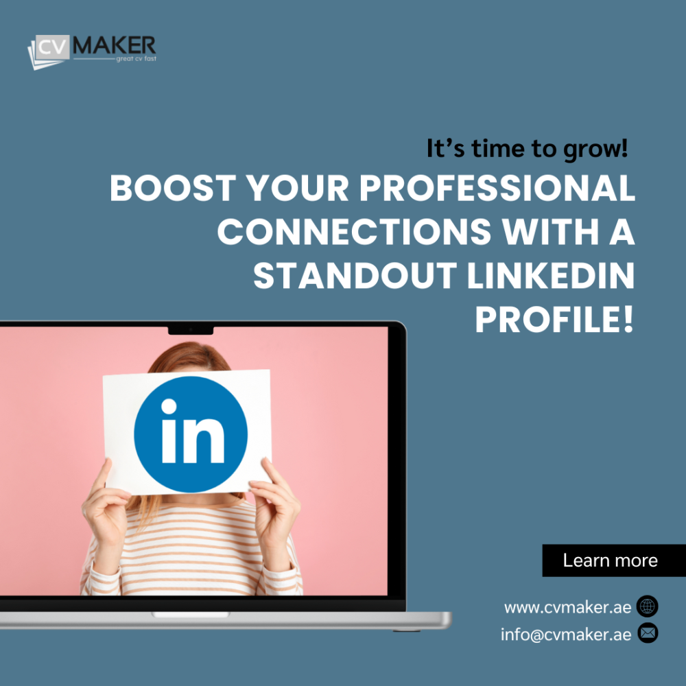 At CV Maker UAE, we craft standout LinkedIn profiles highlighting your strengths, experiences, and skills. Whether you want to expand your connections or make a lasting impression on recruiters, we’ve got you covered!