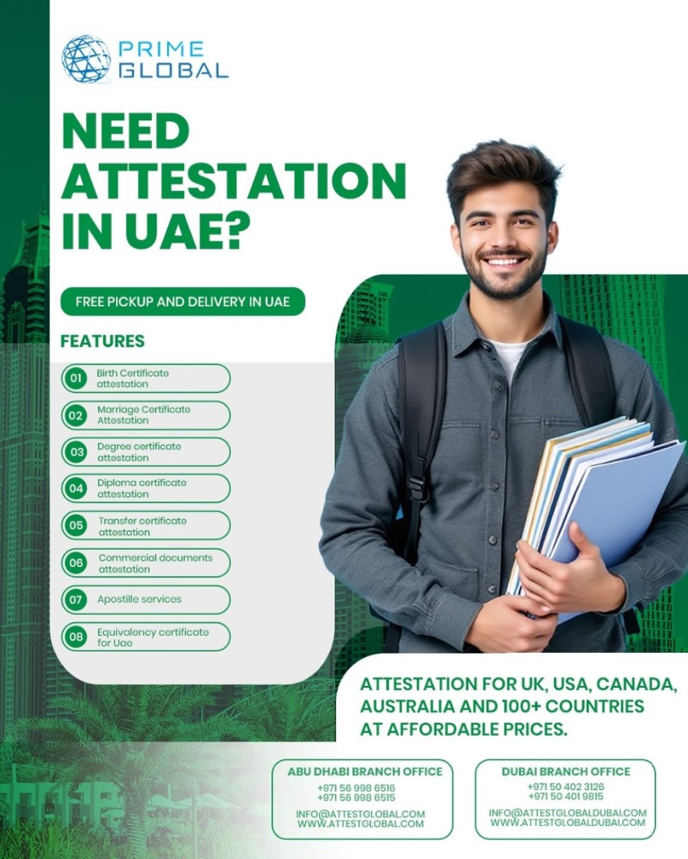 Looking for reliable Attestation Services in Dubai? Attest Global Dubai offers professional certificate and document attestation services with a fast turnaround, trusted expertise, and complete compliance with UAE regulations. Our team ensures your documents are legally recognized for employment, visas, higher education, immigration, business setup, and other official purposes across Dubai and the UAE. With hassle-free processing and end-to-end support, we make certificate attestation simple, secure, and stress-free for expats and businesses alike.