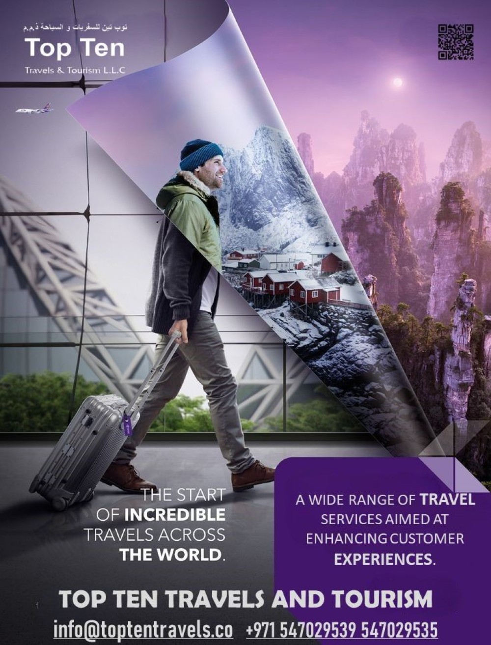 Professionally managed, Topten Travels has a strong and experienced management team at its base, constantly re-inventing to keep up with the fast-changing times and the needs of the discerning client by adding with new Products and services with the use of latest technological and logistic tools. A wide range of travel services aimed at enhancing customer experiences. Contact number:+971547029539 ,65262338