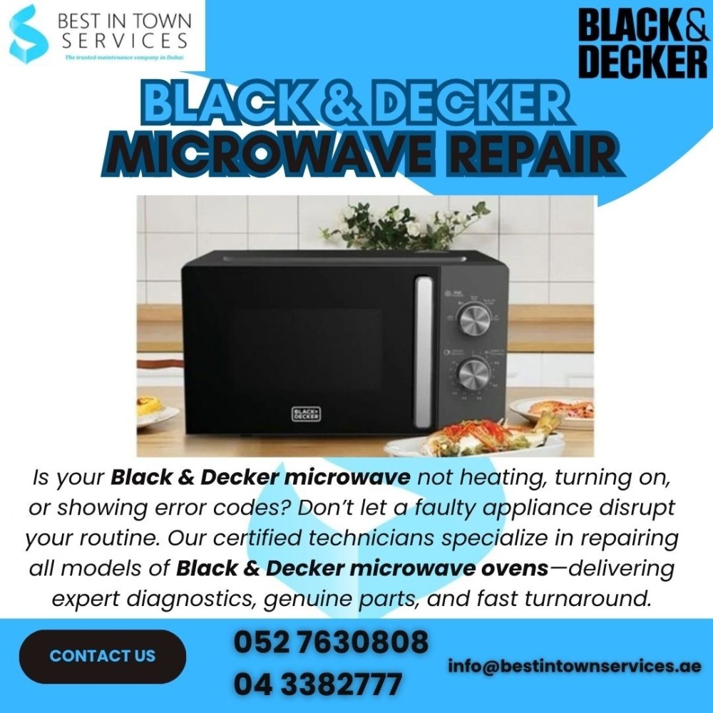 Is your Black & Decker microwave oven not heating, showing errors, or making unusual noises? Don’t let kitchen tasks pile up — Best in Town Services provides fast, reliable, and professional repair solutions to restore your microwave oven to perfect performance. Our expert technicians use genuine parts for long-lasting, hassle-free repairs.