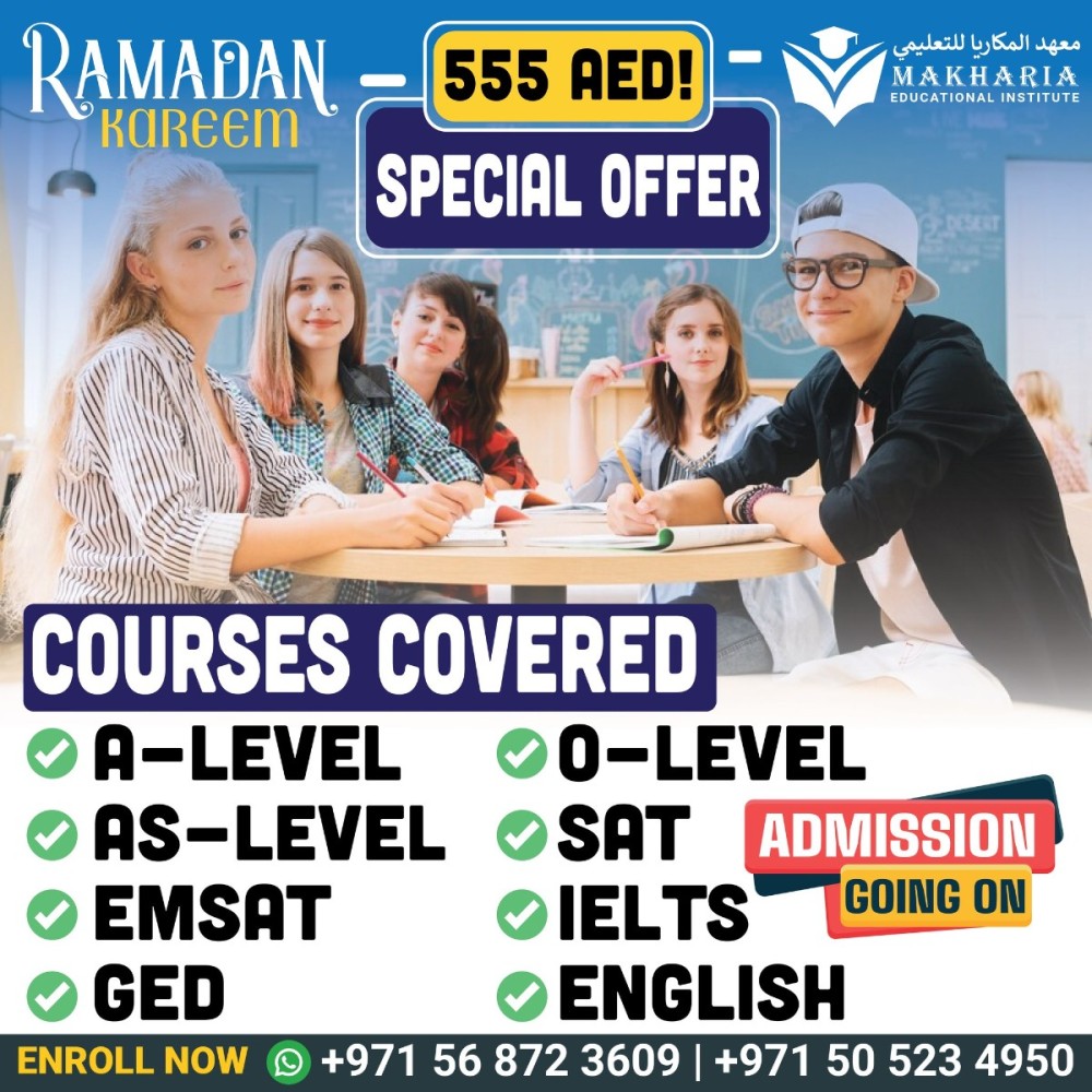 Keywords: #RamadanOffer, #SpecialDiscount, #MakhariaInstitute, #Alevel, #ASlevel, #EMSAT, #GED, #OLevel, #SAT, #IELTS, #EnglishCourse, #LimitedSeats, #EnrollNow,