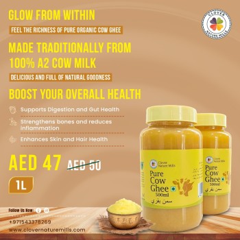 Enjoy the rich taste and nutritional benefits of Clover Pure Cow Ghee with our special combo offer. Get 2 x 500ml packs for just AED 47, down from AED 50!Made from 100% A2 cow milk, our ghee is perfec