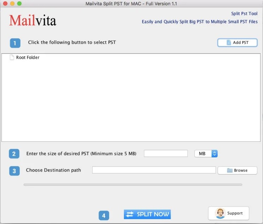 Mailvita Split PST for Mac Tool lets users easily divide a PST file into smaller bits while yet preserving its originality. This utility without technical issues divides large files into multiple Outlook PST files. This software separates PST all items including emails, contacts, calendars, notes, tasks, etc. The application divides PST data based on folders, years, and size. It can divide only a healthy database. It operates with every Windows OS edition as well as Microsoft Outlook. It supports UNICODE files as well as ANSI. It is compatible with Mac OS editions such as 14, 13, 12, 11, 10.15, 10.14, etc. Users can test the application with the free demo edition before buying it.
