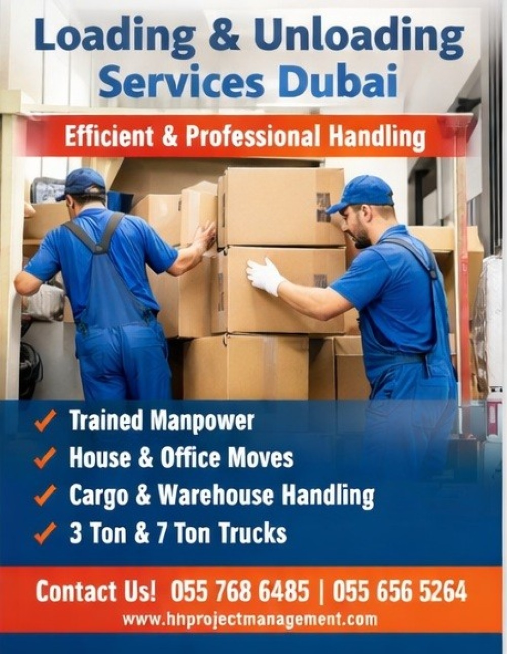 Looking for reliable loading unloading services in Dubai? HH Project Management provides professional, safe, and affordable loading and unloading services for residential, commercial, and industrial needs. Our trained labor team ensures careful handling of goods, furniture, equipment, and materials to prevent damage during transport.