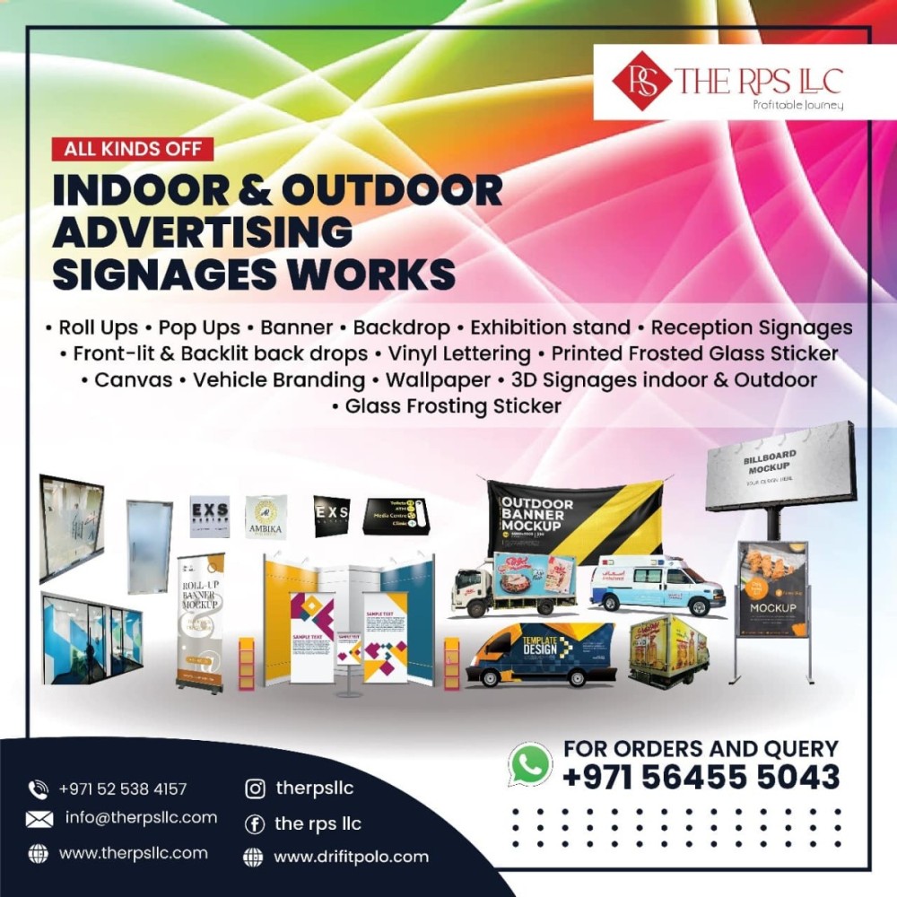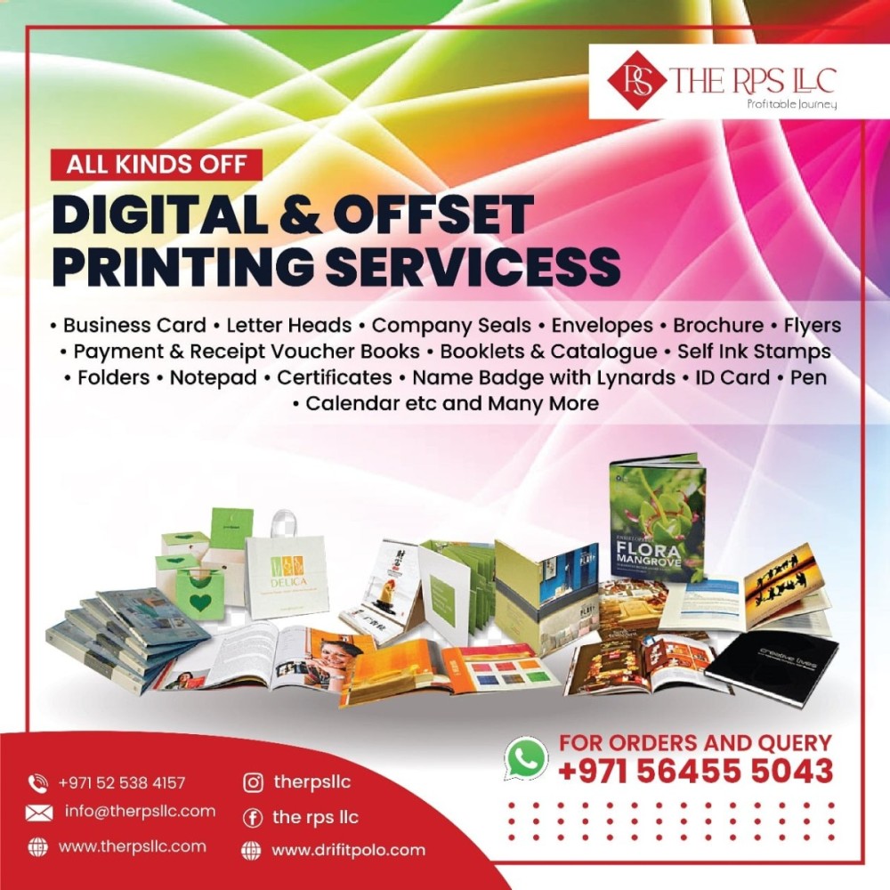 Make your creative ideas come to life with THE RPS LLC, the best option for digital printing services in Dubai! With our advanced printing solutions, you can boost your brand, with your target market, and make a lasting impact. We create your vision with superb design and eye-catching graphics. At THE RPS LLC, we're experts at using our awesome technology to create amazing images. We can help in creating items such as attractive banners, posters, and t-shirt printing, corporate gift items, etc.