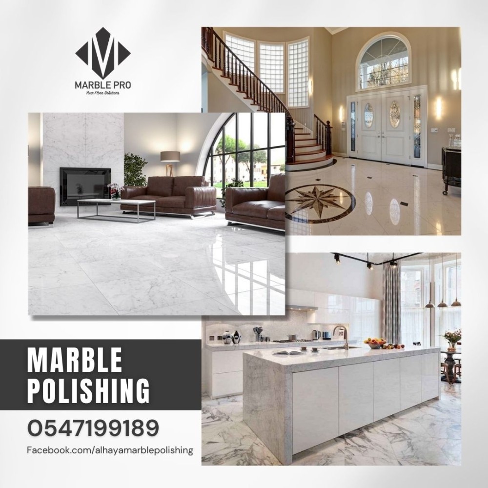 Al Haya cleaning services is providing all type marble polishing, granite polishing, quartzite polishing and all kind of natural stone restoration and polishing services to recover the shine and luster of marble surfaces. The process generally involves honing, grinding, polishing, crystallization the marble surface to a glossy finish.