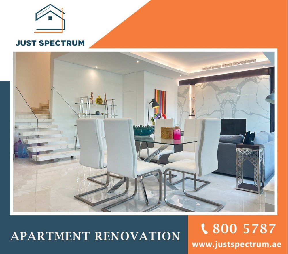 Looking for professional and affordable apartment renovation services in Dubai? Look no further than Just Spectrum. Our team of experts is committed to providing high-quality renovation services at competitive prices. Whether you are looking to upgrade your kitchen, bathroom, or entire apartment, we have the skills and experience to transform your space. From concept to completion, we ensure attention to detail and a seamless renovation process. At Just Spectrum, we understand the value of your investment and strive to deliver exceptional craftsmanship while respecting your budget. We aim to create a customized and functional living space that reflects your style and needs. With our dedication to professionalism and affordability, Just Spectrum is your go-to choice for apartment renovations in Dubai. Get in touch with us today for a consultation and let us help you turn your apartment into your dream home.