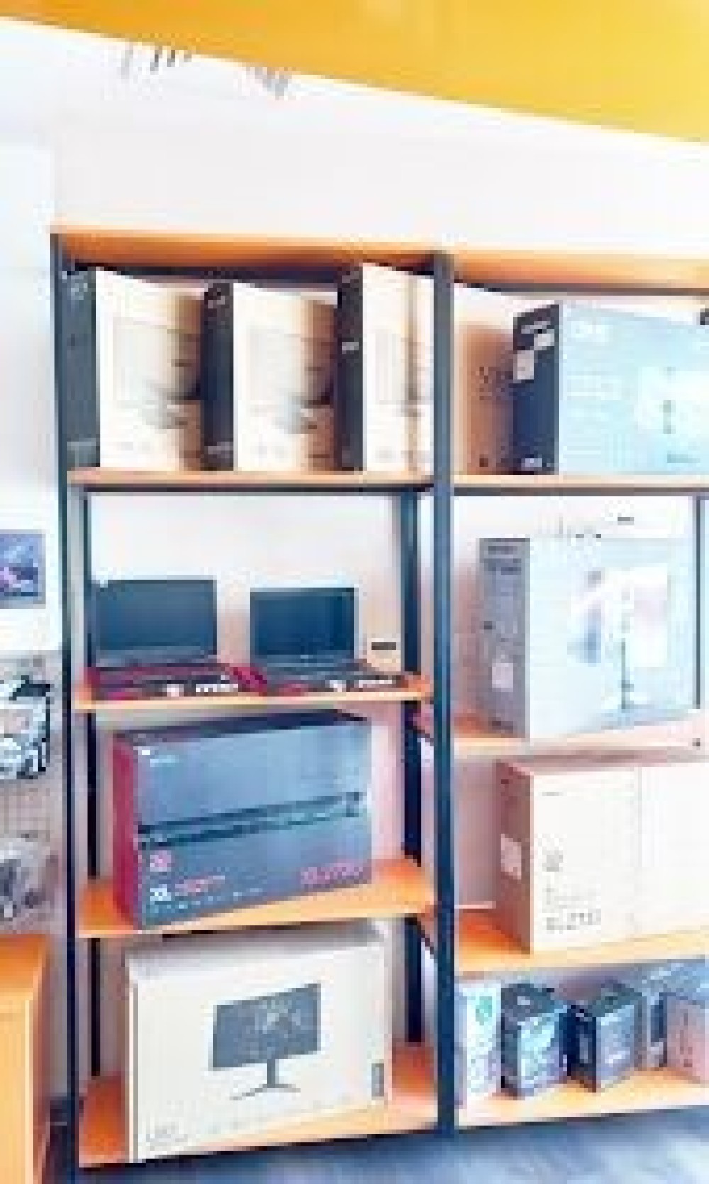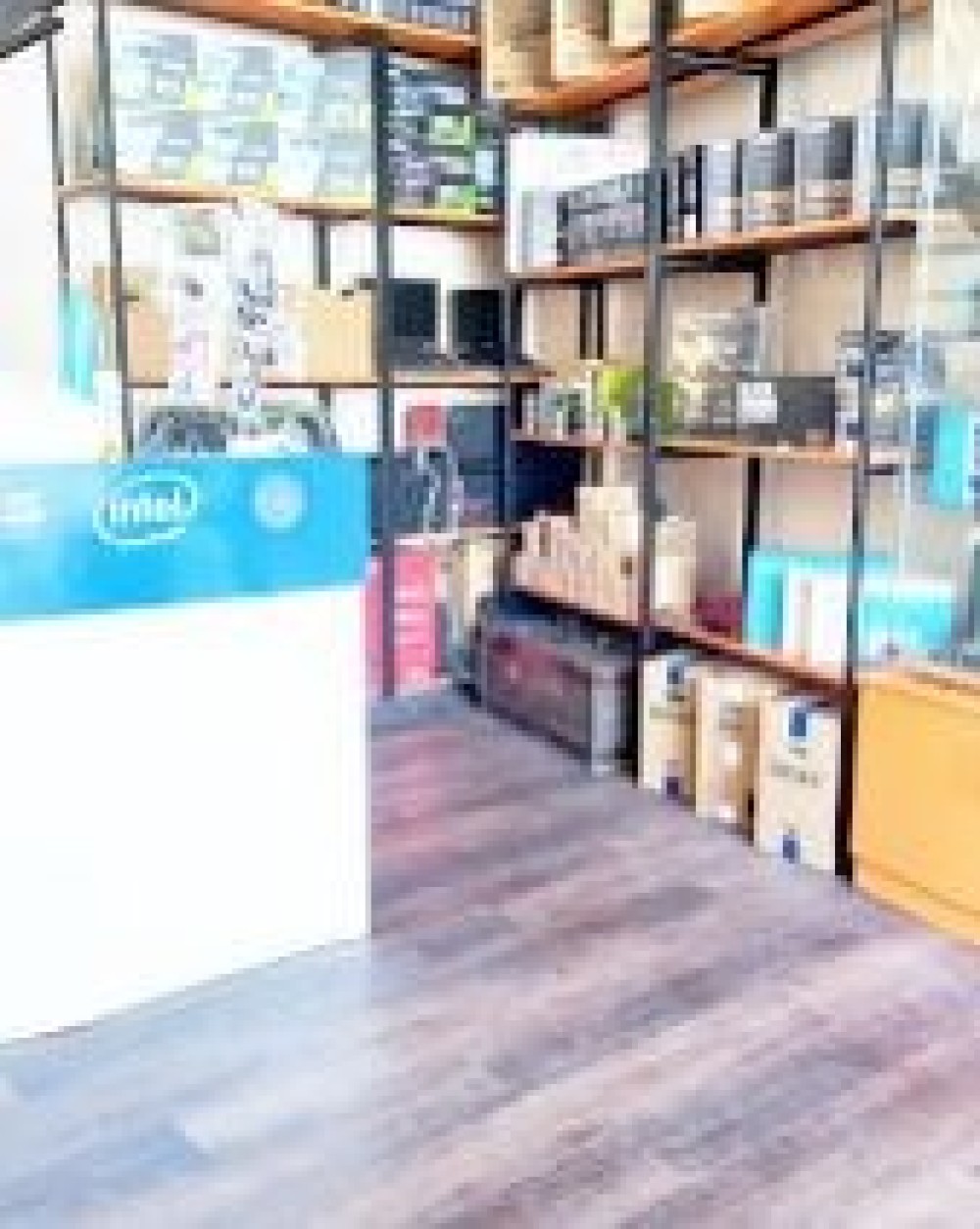 There are 6 wide tables, a reception table, a maintenance table, and two excellent glass cabinets for display